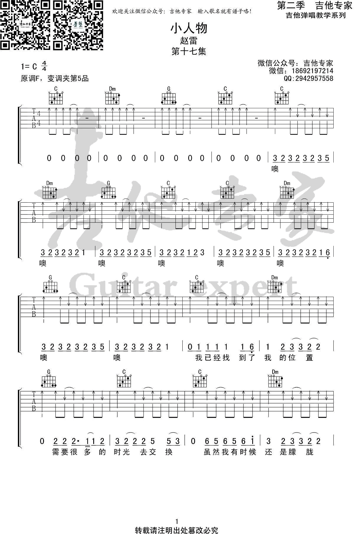 曲谱介绍: 《小人物》吉他谱,赵雷终于正式发布了这首新歌单曲的官方版本,还是熟悉的配方,还是熟悉的味道。小人物六线谱,原调F,变调夹夹五品,C调指法编配,感谢吉他专家分享出品,吉他谱整理上传。