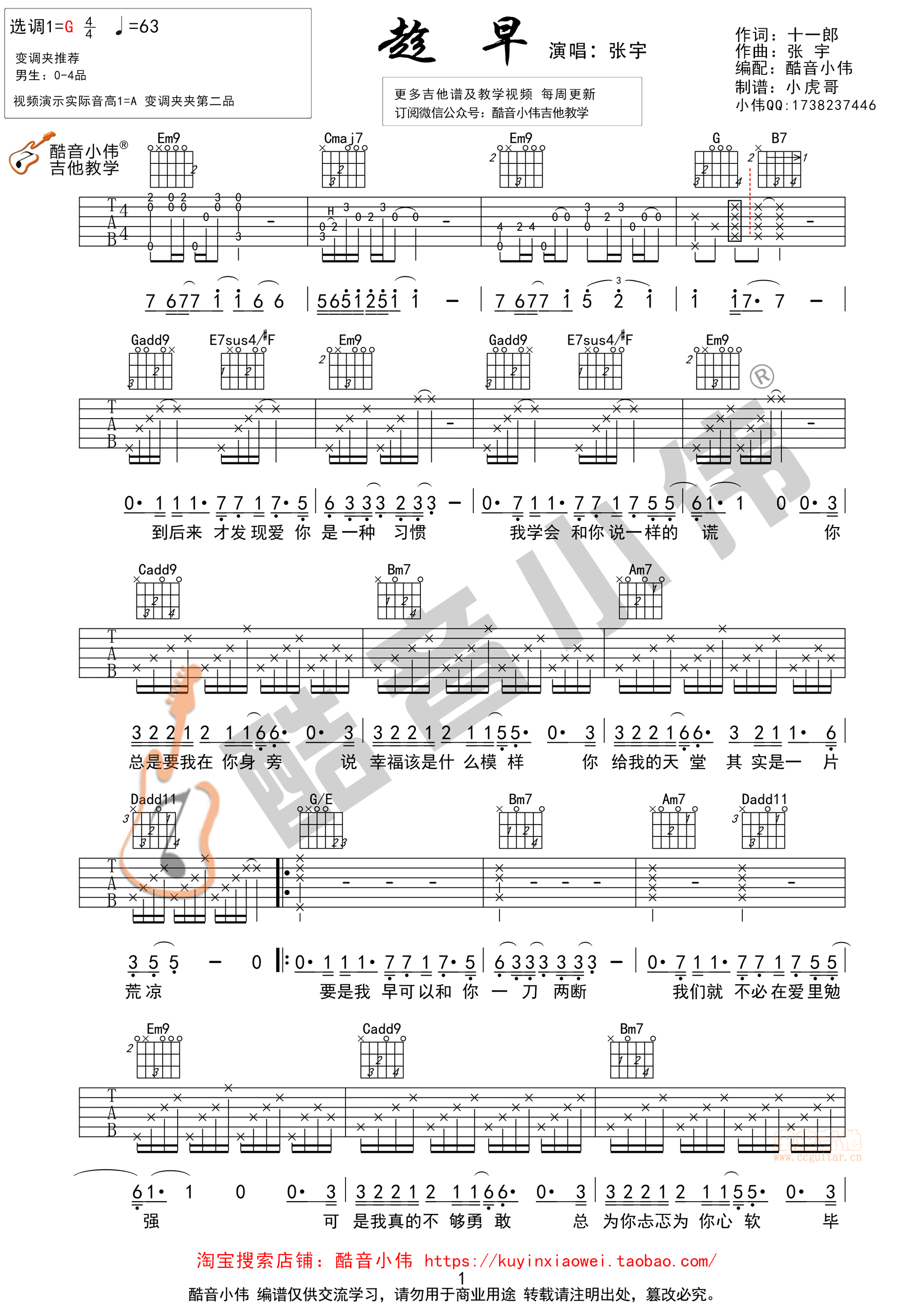 趁早吉他谱 - 吉他弹唱谱