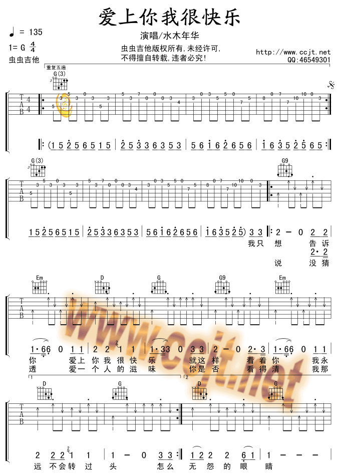 爱上你我很快乐吉他谱 - 吉他弹唱谱