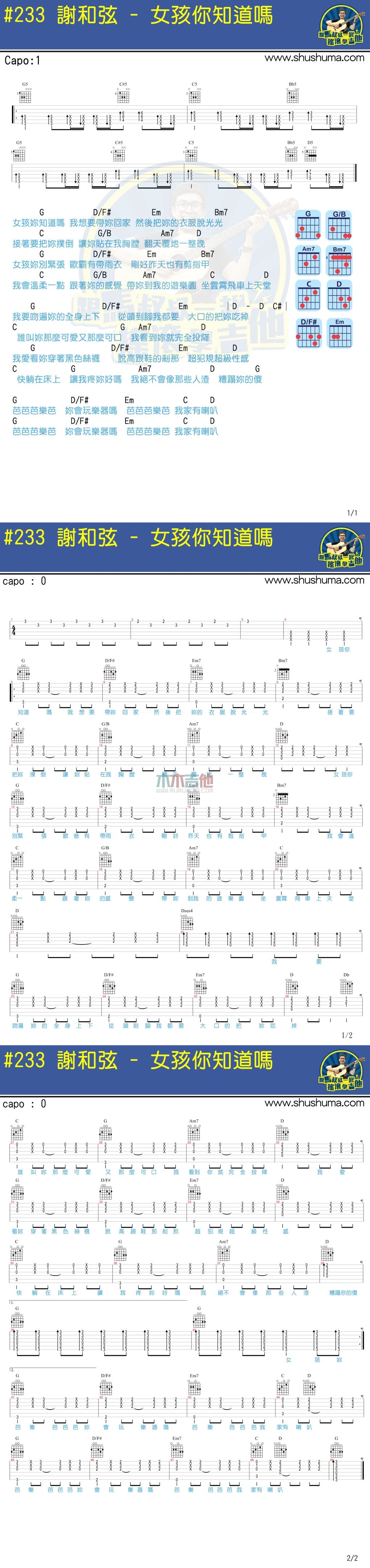 女孩你知道吗吉他谱 - 吉他弹唱谱