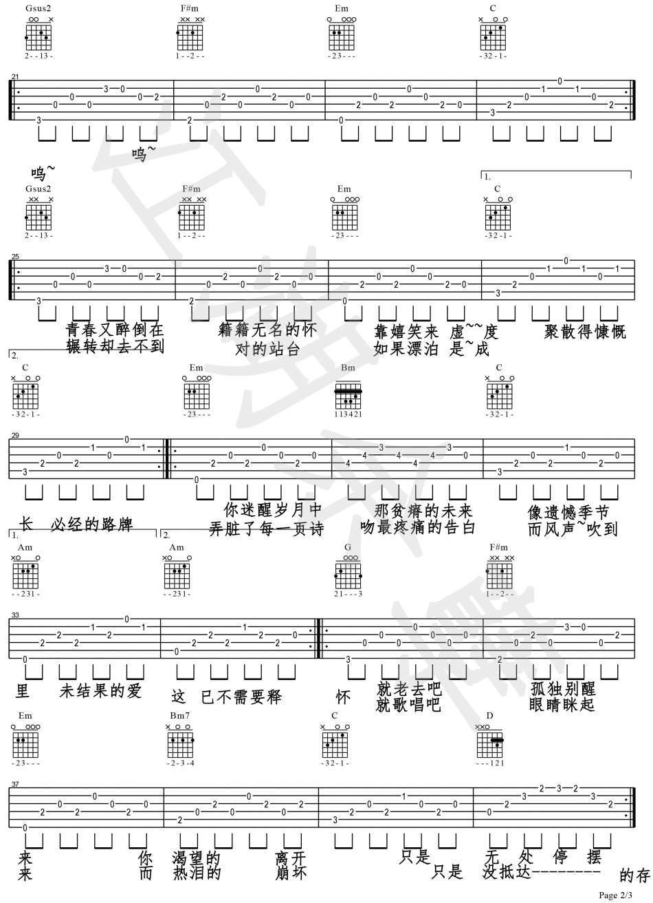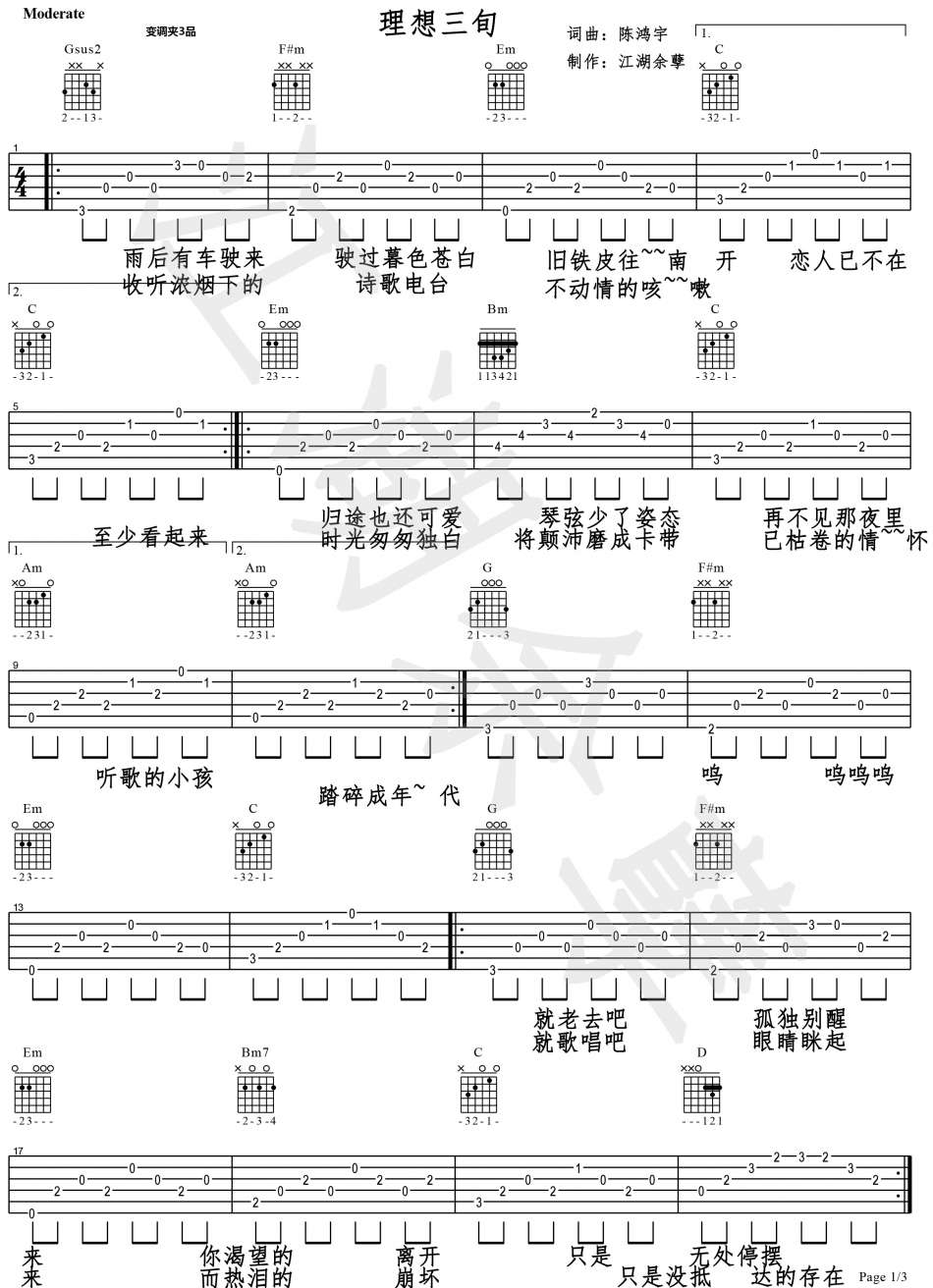 曲谱介绍: 《三旬》吉他弹唱谱,共有3张高清图谱。