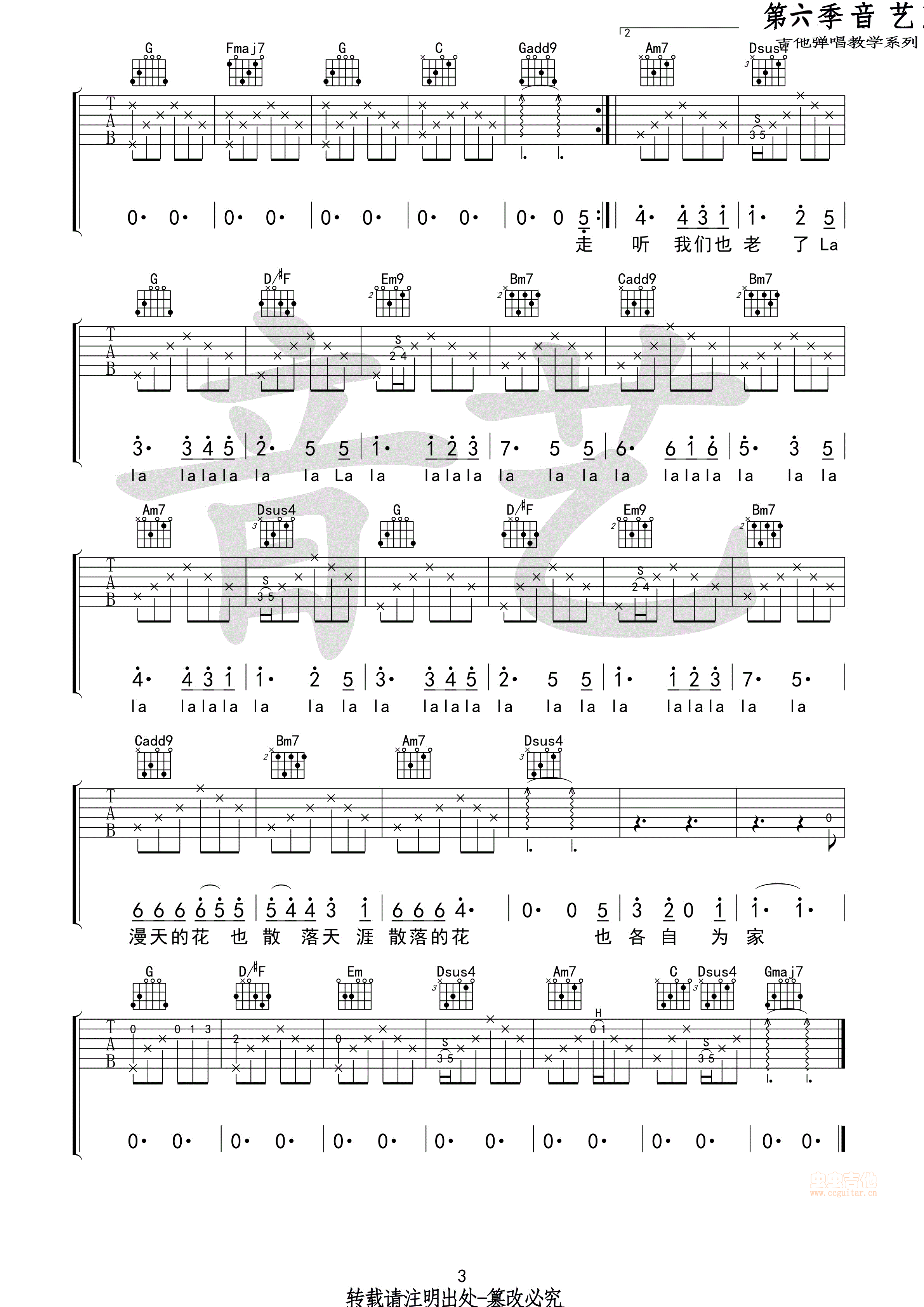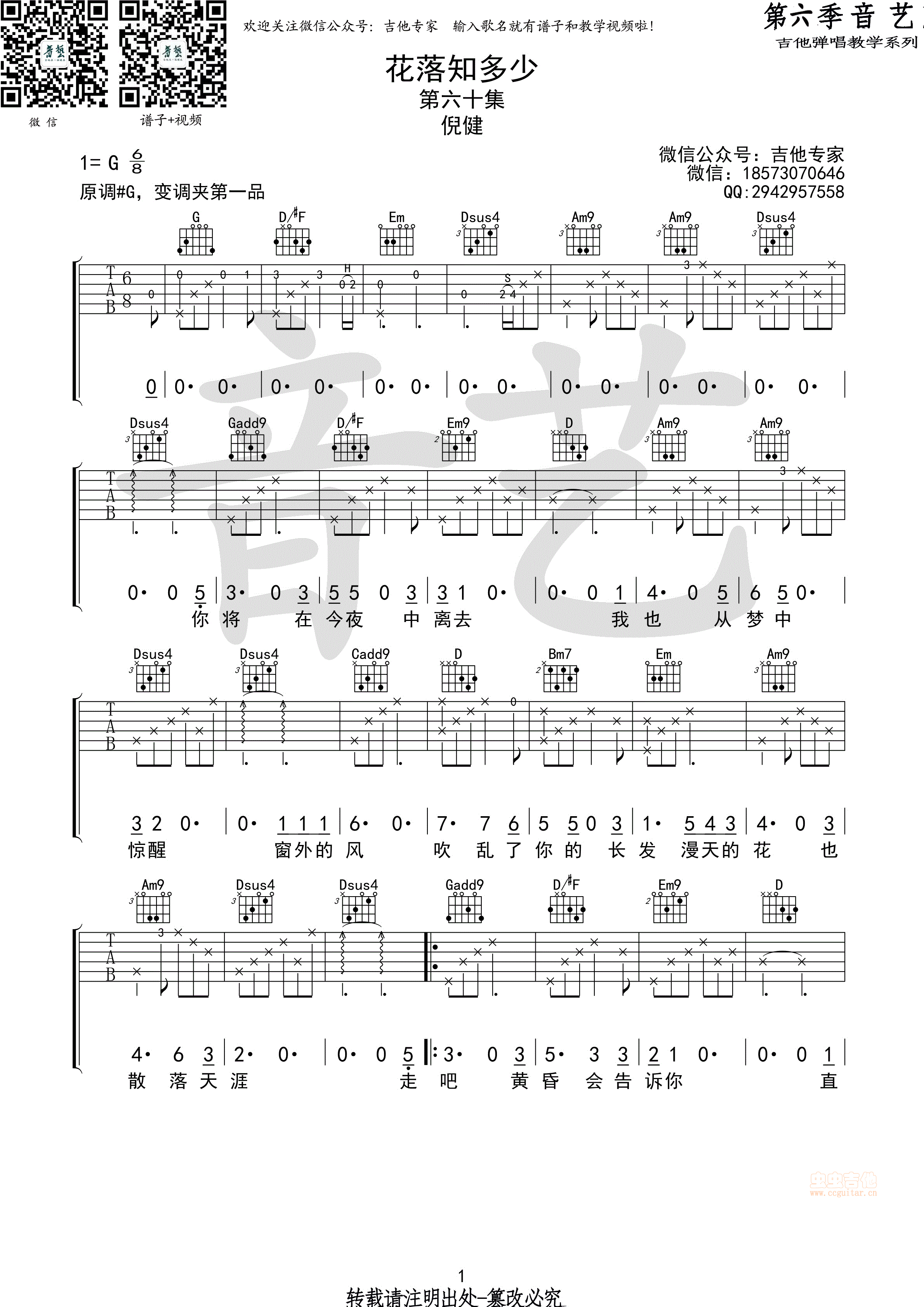花落知多少吉他谱 - 吉他弹唱谱