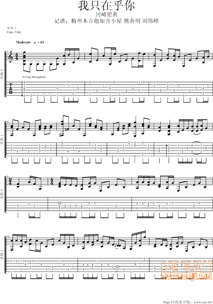 我只在乎你吉他谱 - 吉他弹唱谱