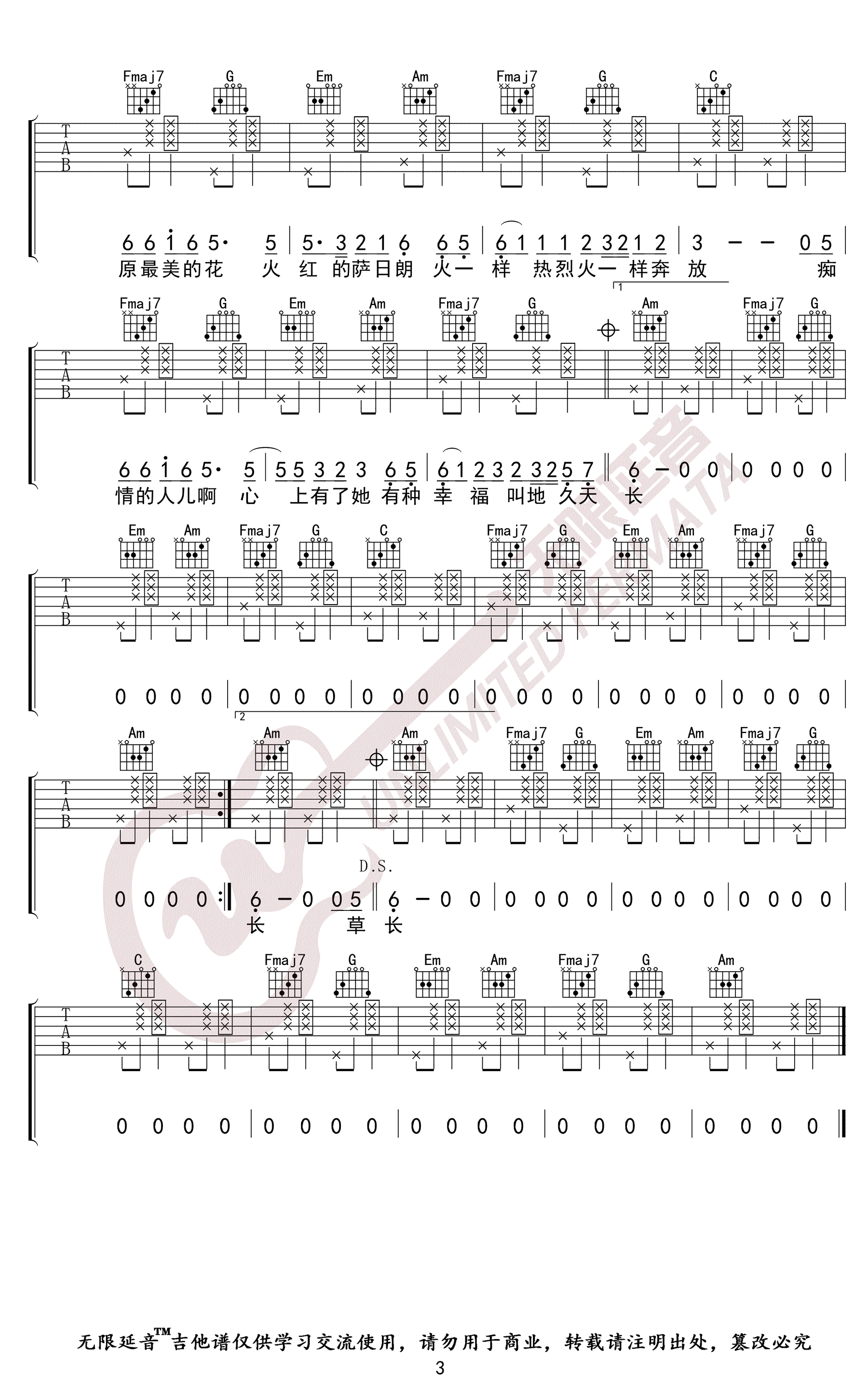 火红的萨日朗吉他谱 - 要不要买菜 - 吉他弹唱谱