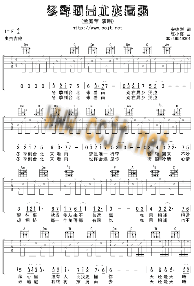 当前位置:琴谱网>吉他弹唱>冬季到台北来看雨