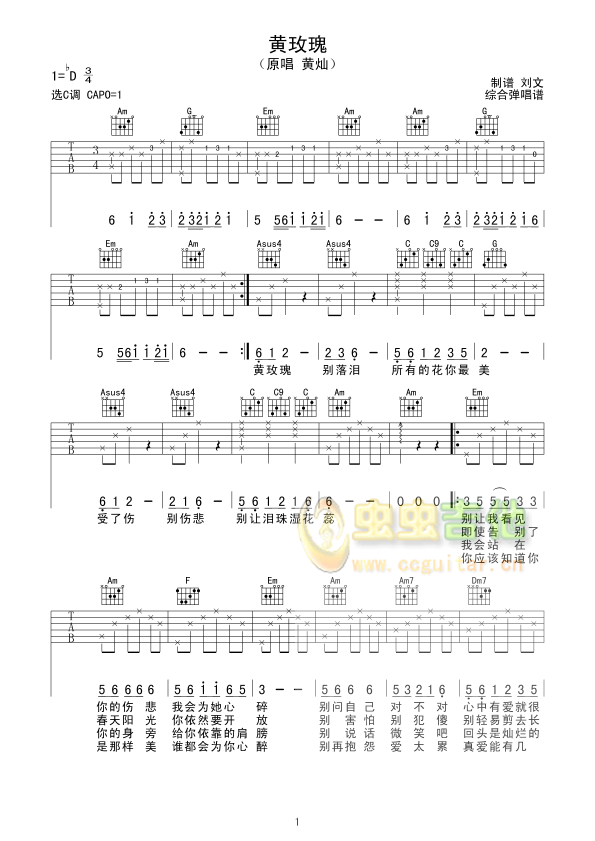 黄玫瑰吉他谱 - 吉他弹唱谱