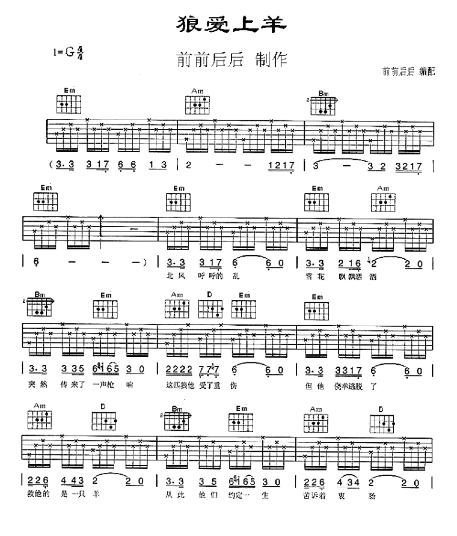 曲谱介绍: 类型:弹唱/伴奏谱难度:中级调式:G调;汤潮的深情演绎狼爱上羊感动万千歌迷的歌曲