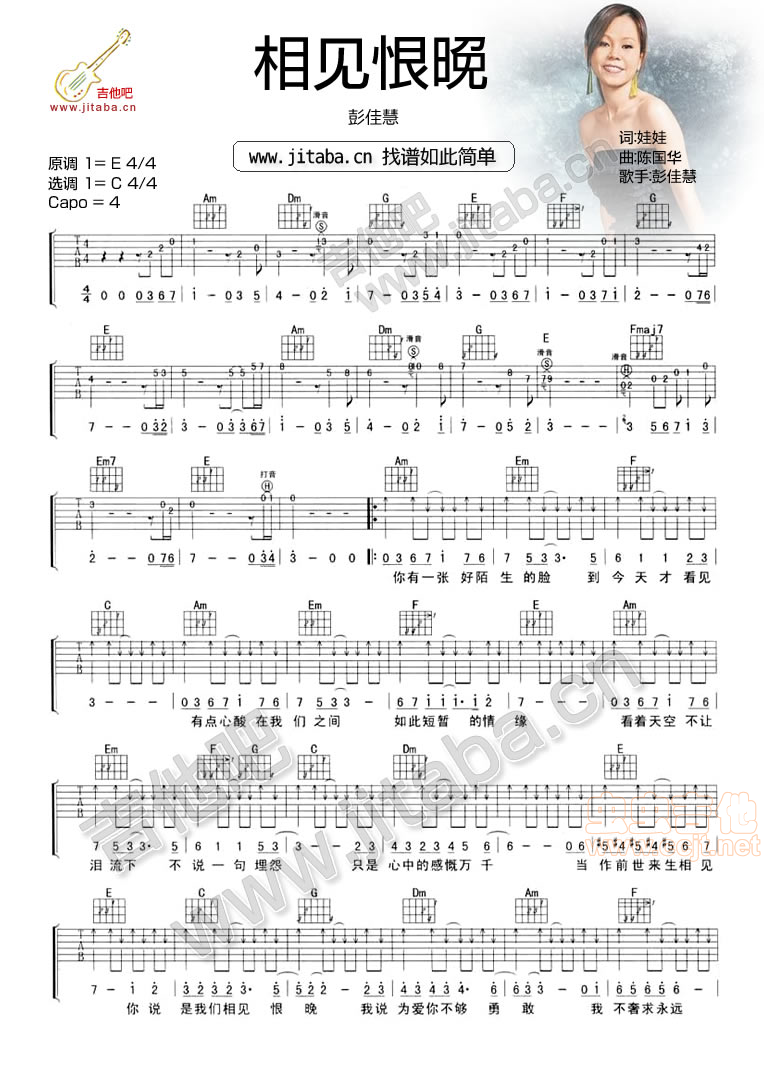 当前位置:琴谱网>吉他弹唱>相见恨晚