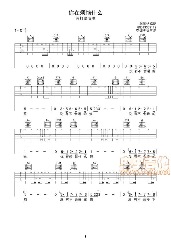 你在烦恼什么吉他谱 - 吉他弹唱谱