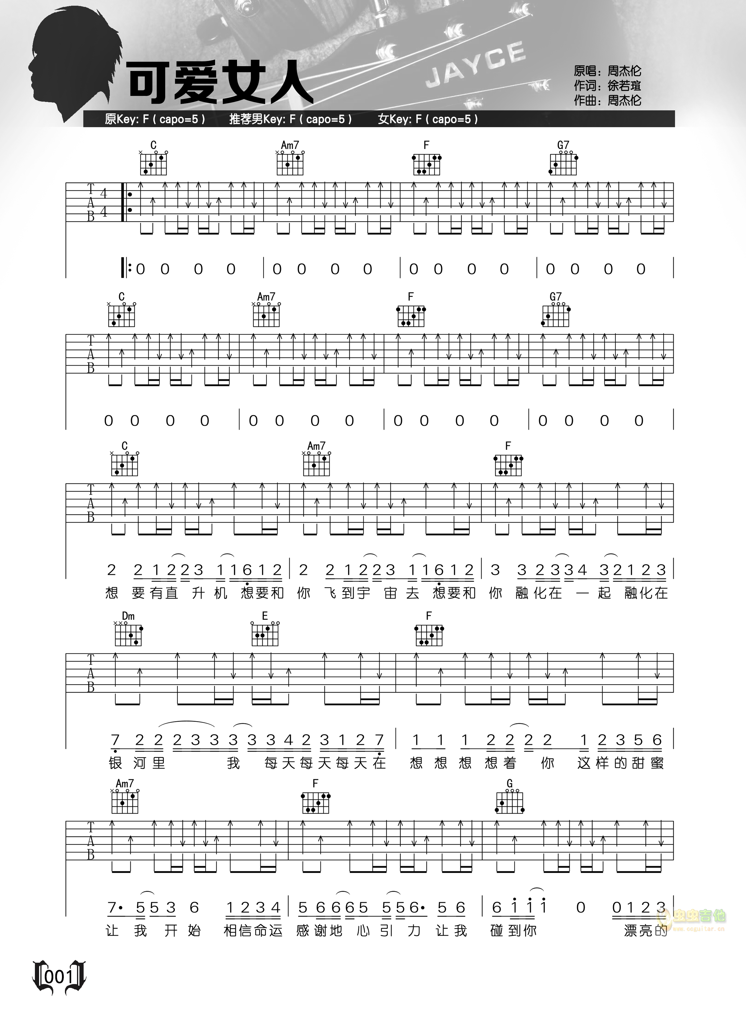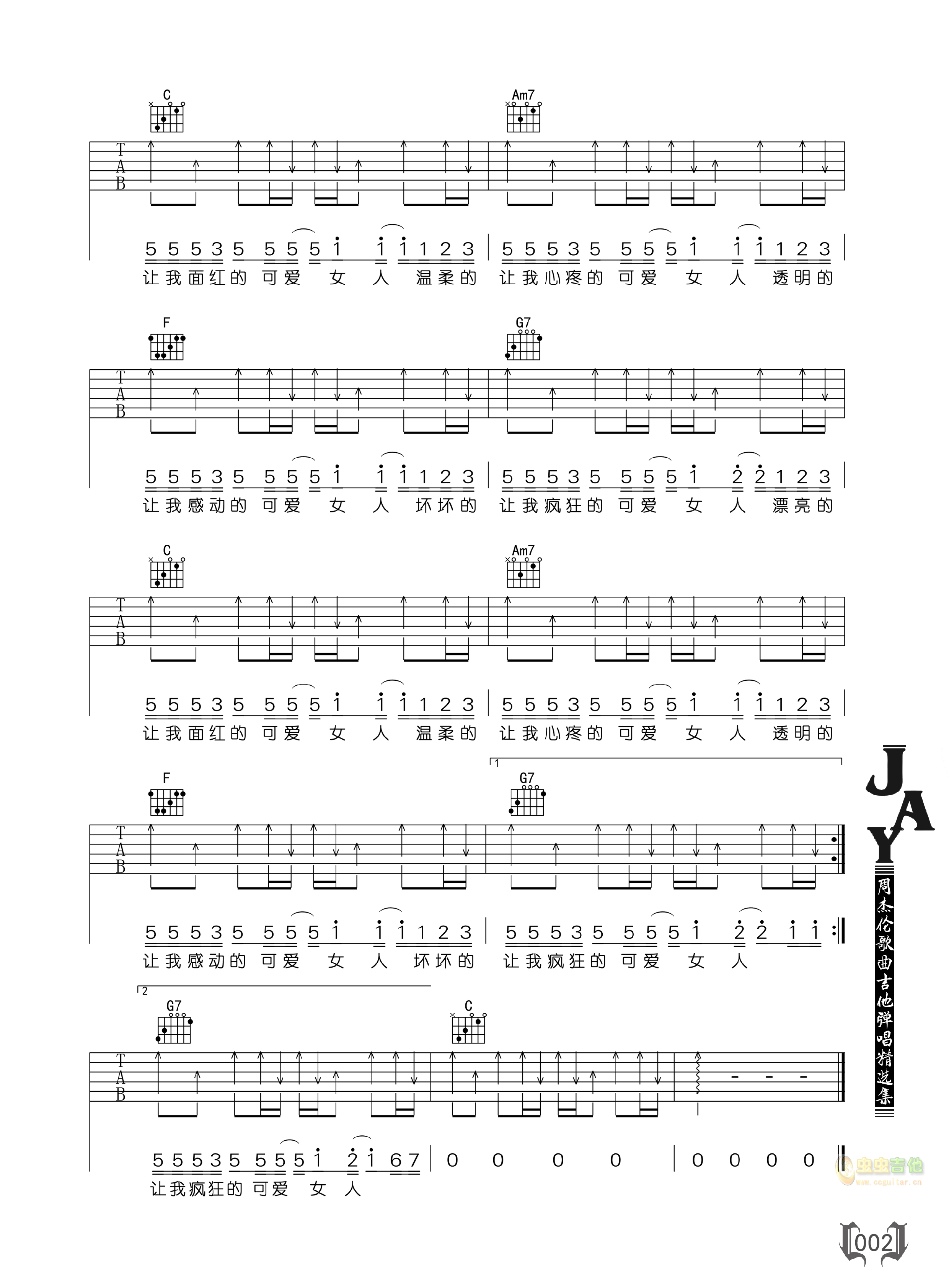 可爱女人吉他谱 - 吉他弹唱谱