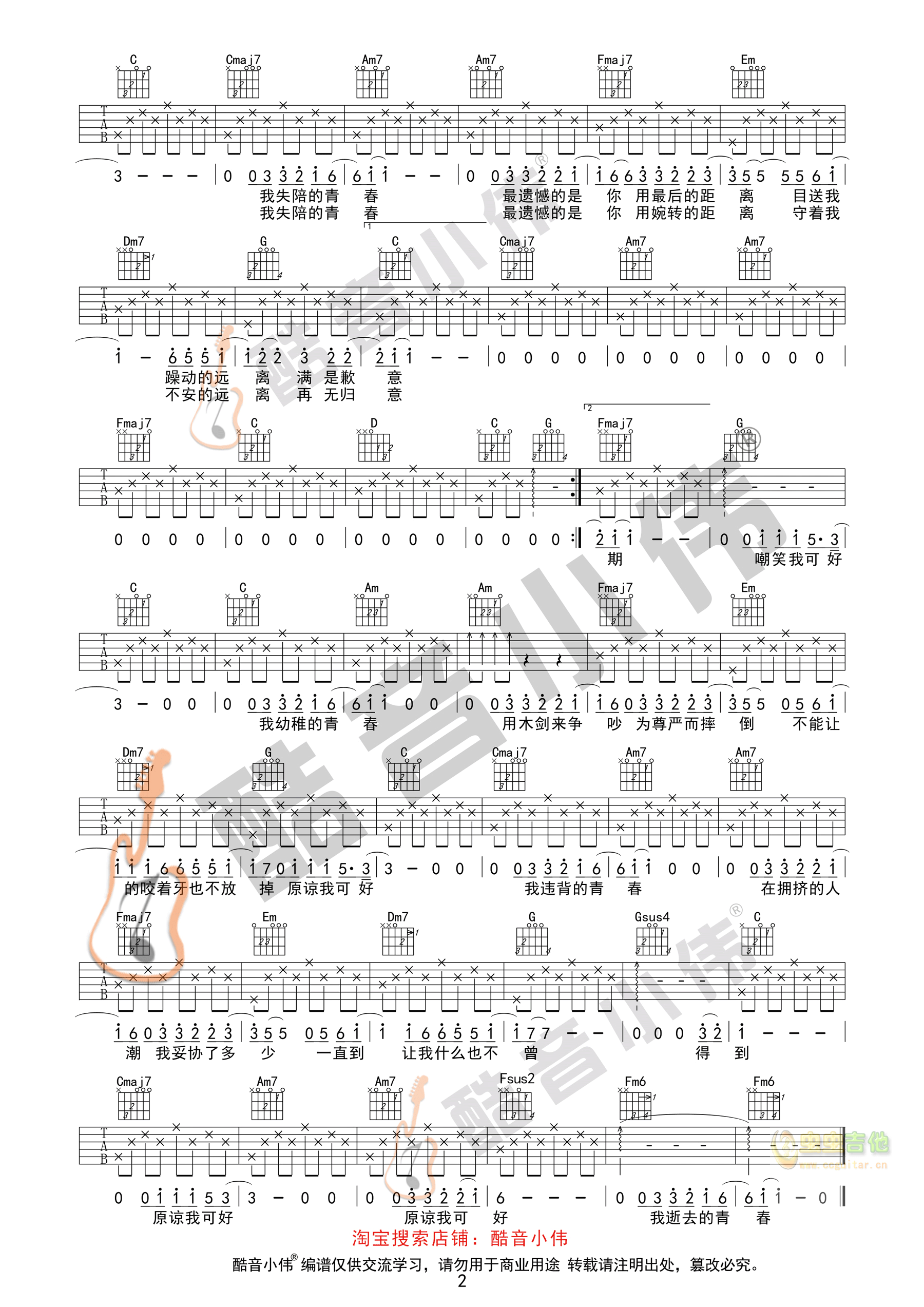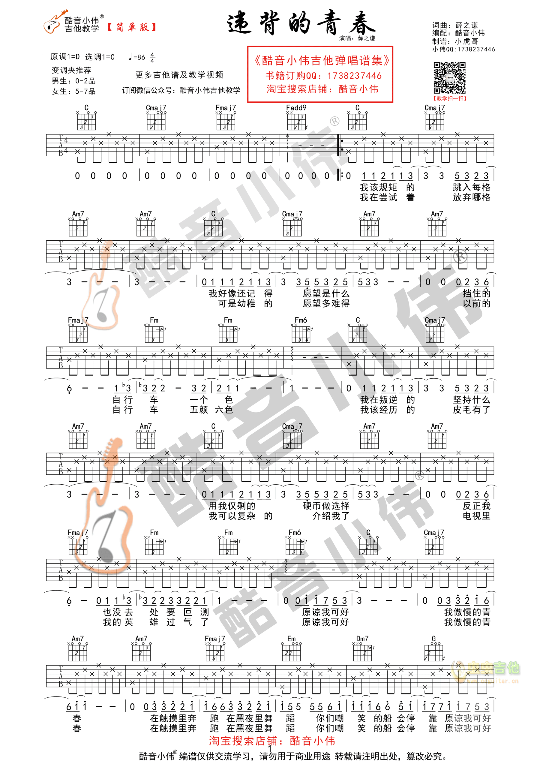 当前位置:琴谱网>吉他弹唱>违背的青春