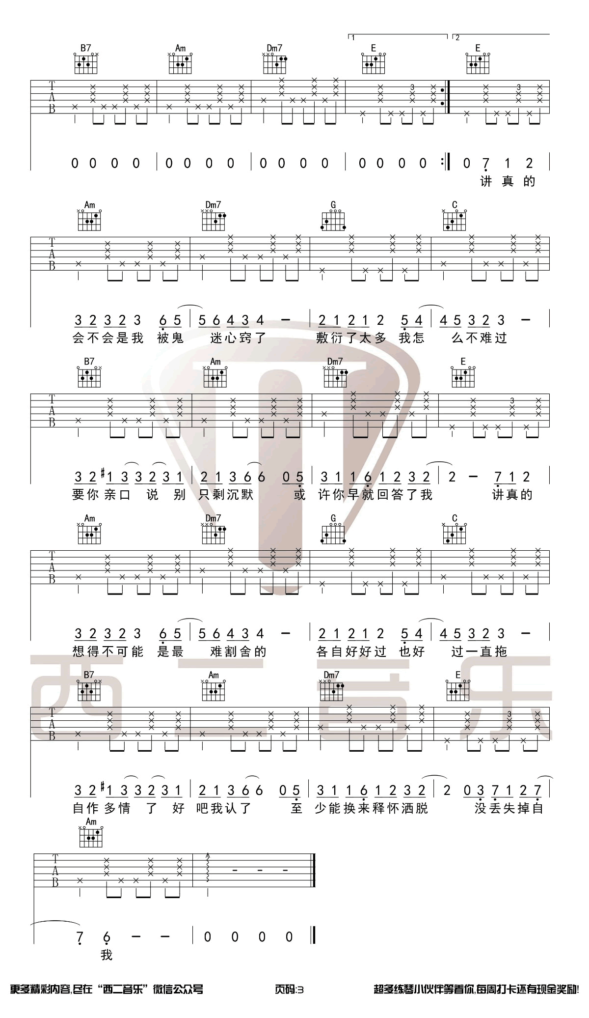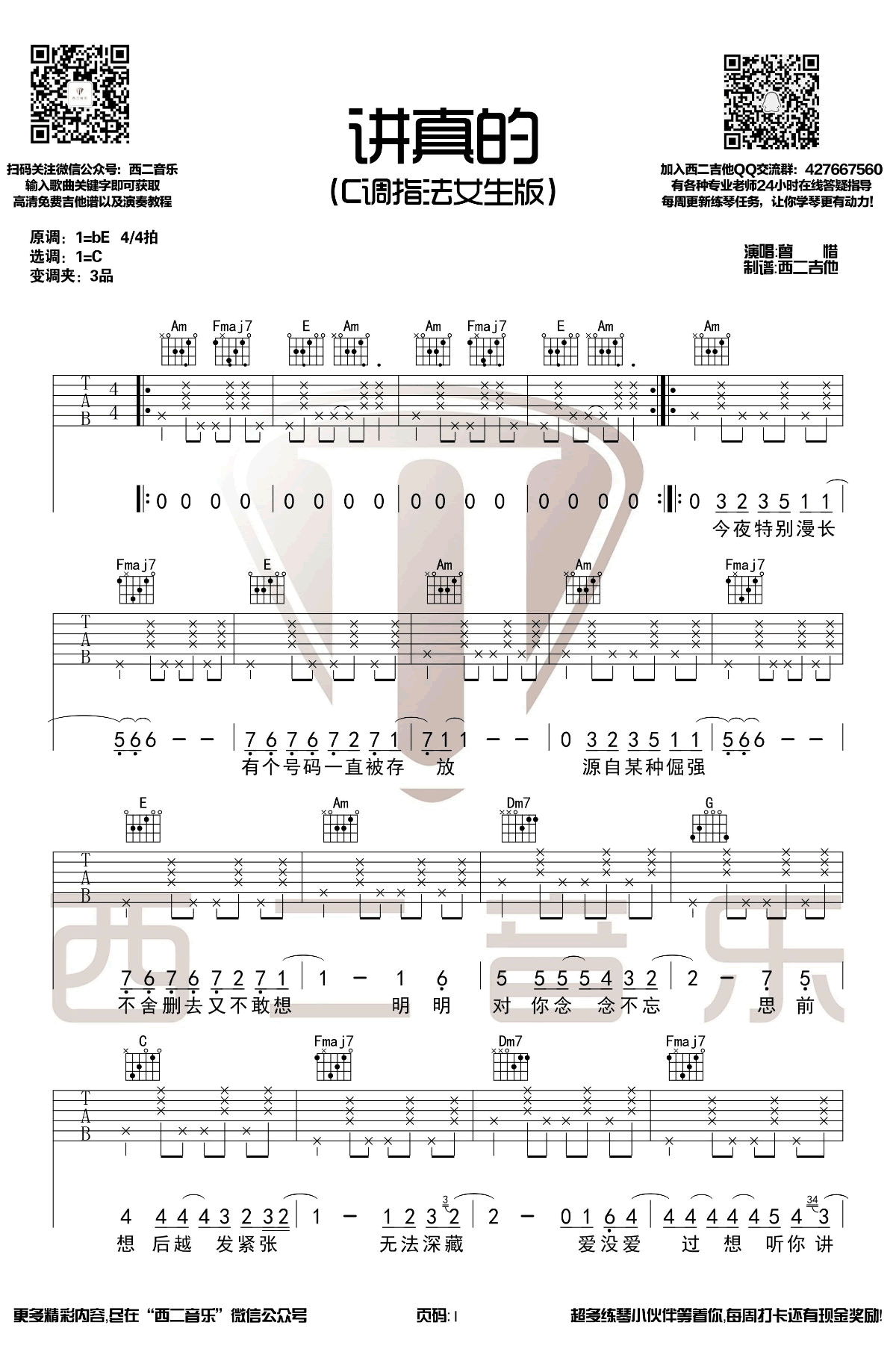 讲真的吉他谱 - 曾惜 - 吉他弹唱谱