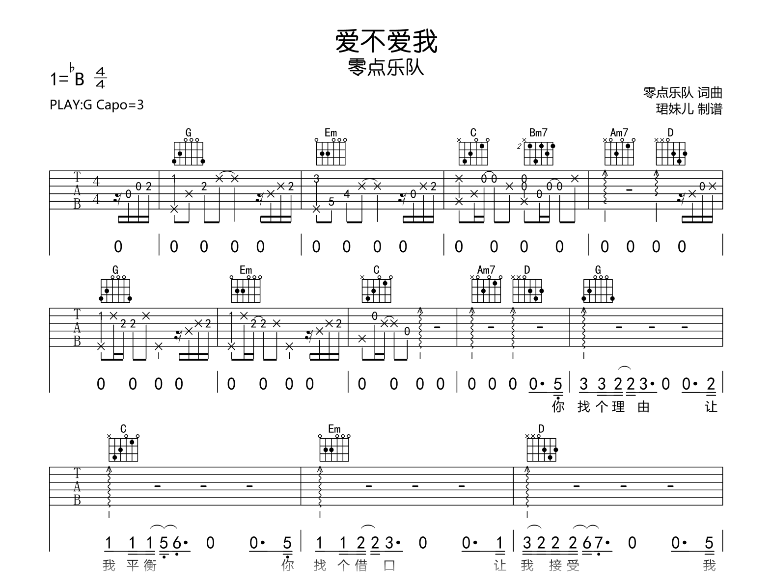 爱不爱我吉他谱 - 零点乐队 - G调吉他弹唱谱