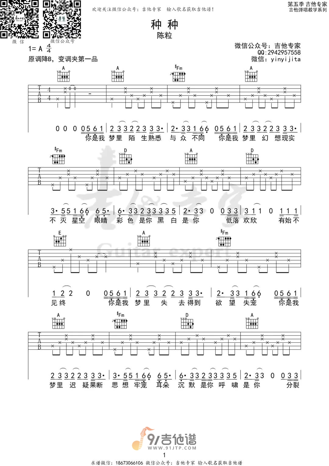 当前位置:琴谱网>吉他弹唱>种种