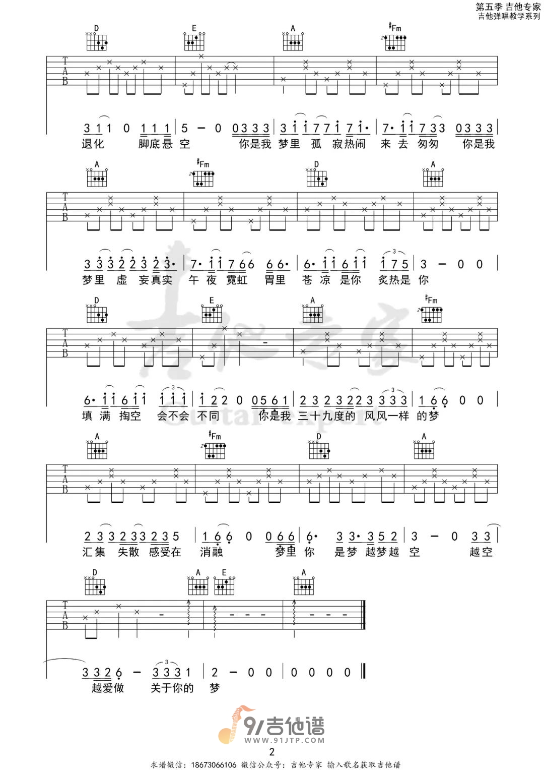 曲谱介绍: 曲谱简介:种种吉他谱,陈粒演唱的一首歌曲,4/4拍的节奏,这首歌曲的原调为降B调,这里曲谱采用了A调指法进行编配,演唱时夹变调夹1品可回到原调,也可根据个人实际嗓音情况选择。曲谱由吉他专家编配出品。一句“你是我三十九度的风,风一样的梦”,让多少人迷上了这首歌,这是一首非常纯的歌,讲不清是纯粹还是纯净,戴着耳机细细的听,陈粒一开口,就陷进去了,整个世界都是这首歌,怦然心动。