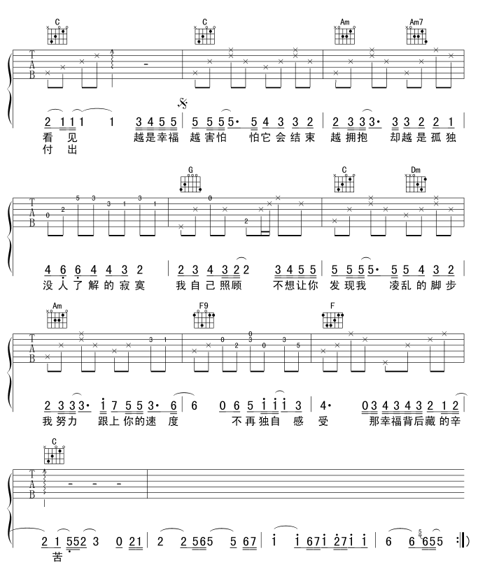 当前位置:琴谱网>吉他弹唱>幸福背后