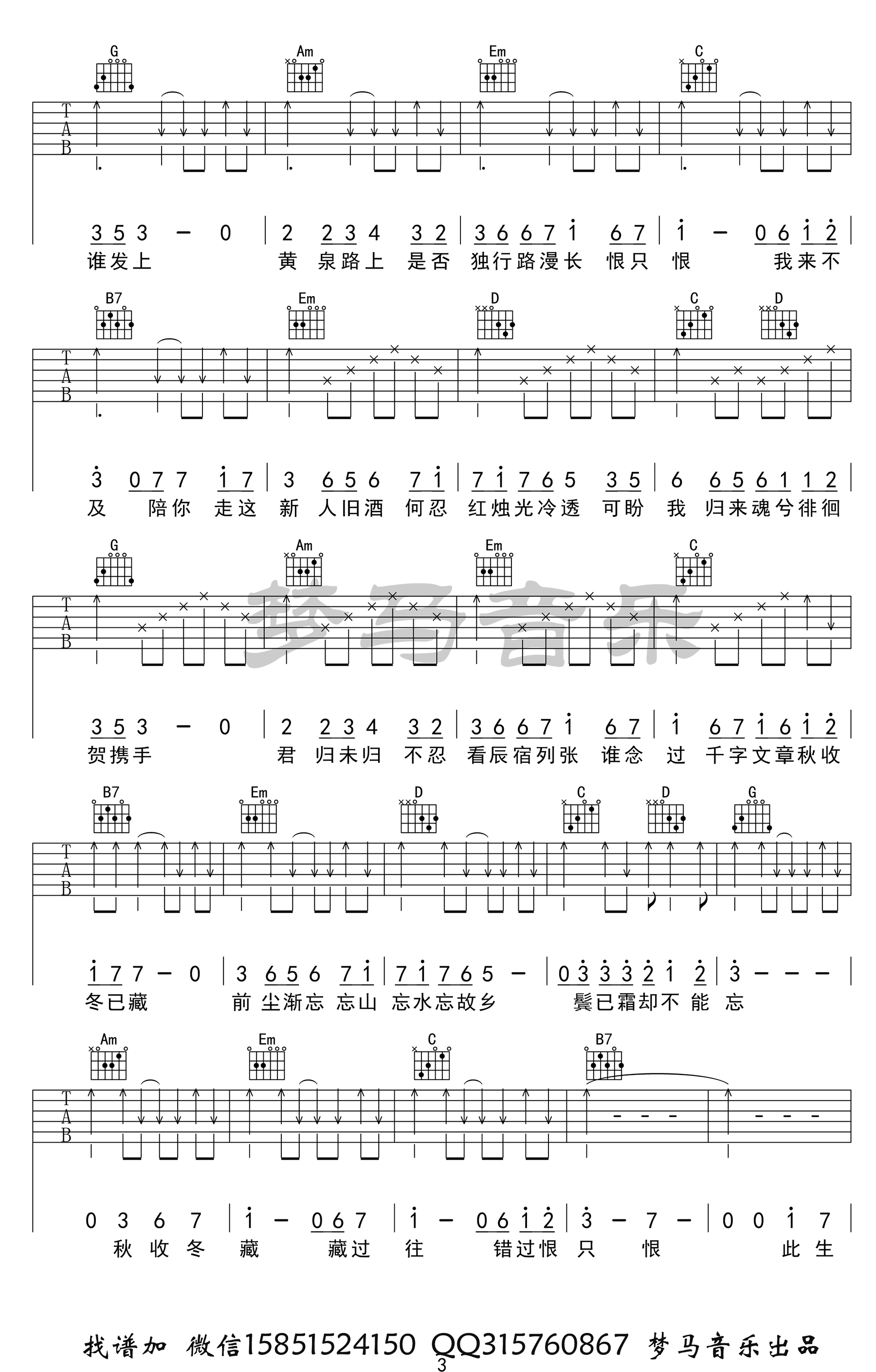 曲谱介绍: 《参商》吉他谱,不才演唱的一首古风歌曲,也是剑网三里面的一首经典剧情曲目。参商六线谱,G调和弦弹唱谱,完整版共四张高清图片谱,梦马音乐编配出品,整理上传。 参星与商星,二者在星空中此出彼没,不能相见。这首歌说得是剑三网游中,天策李傲血和藏剑叶问水永不相见的故事。夏祯阳老师说明:这首改编版的《参商》,与古风歌手啊咧一起合作,希望大家喜欢!