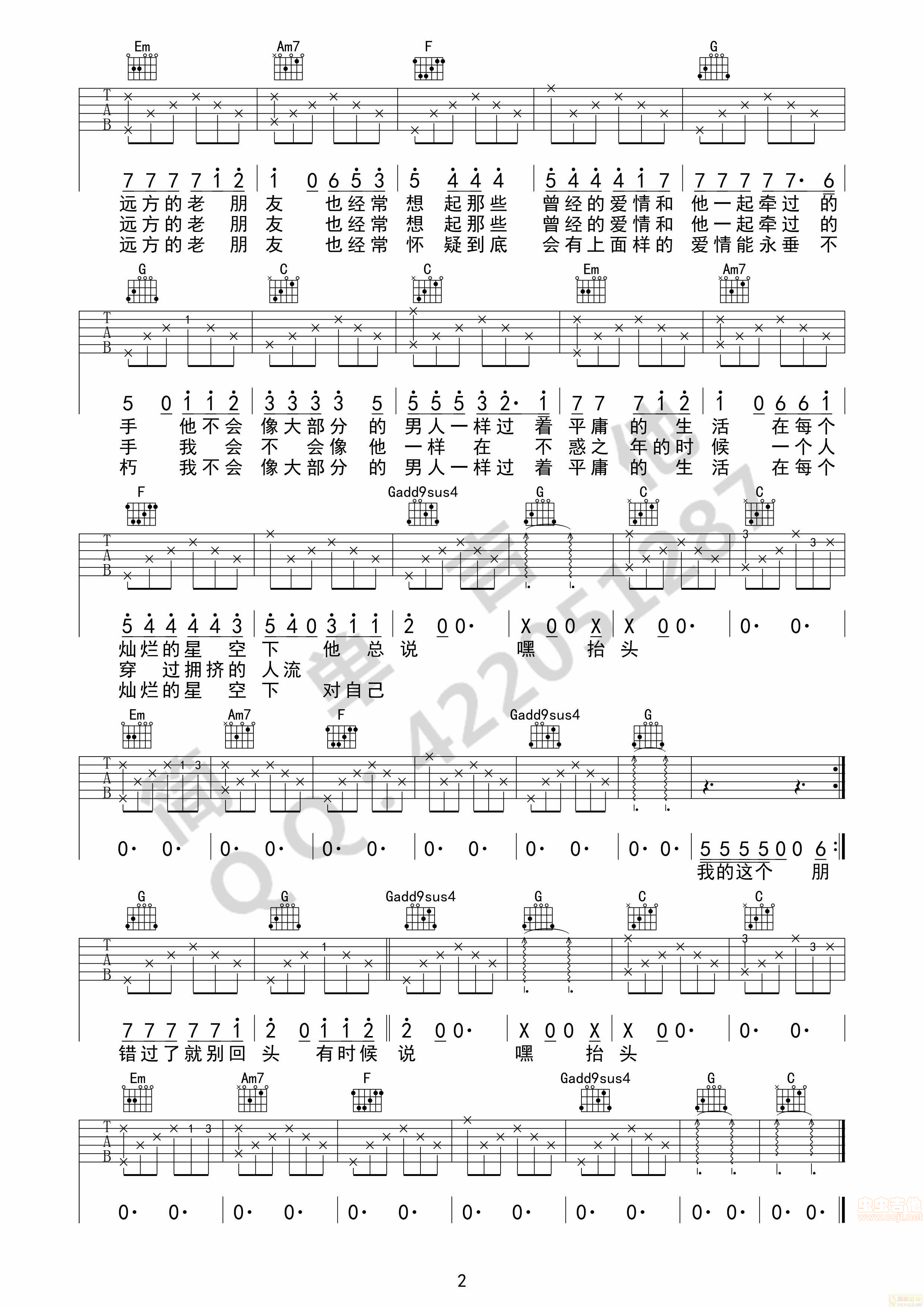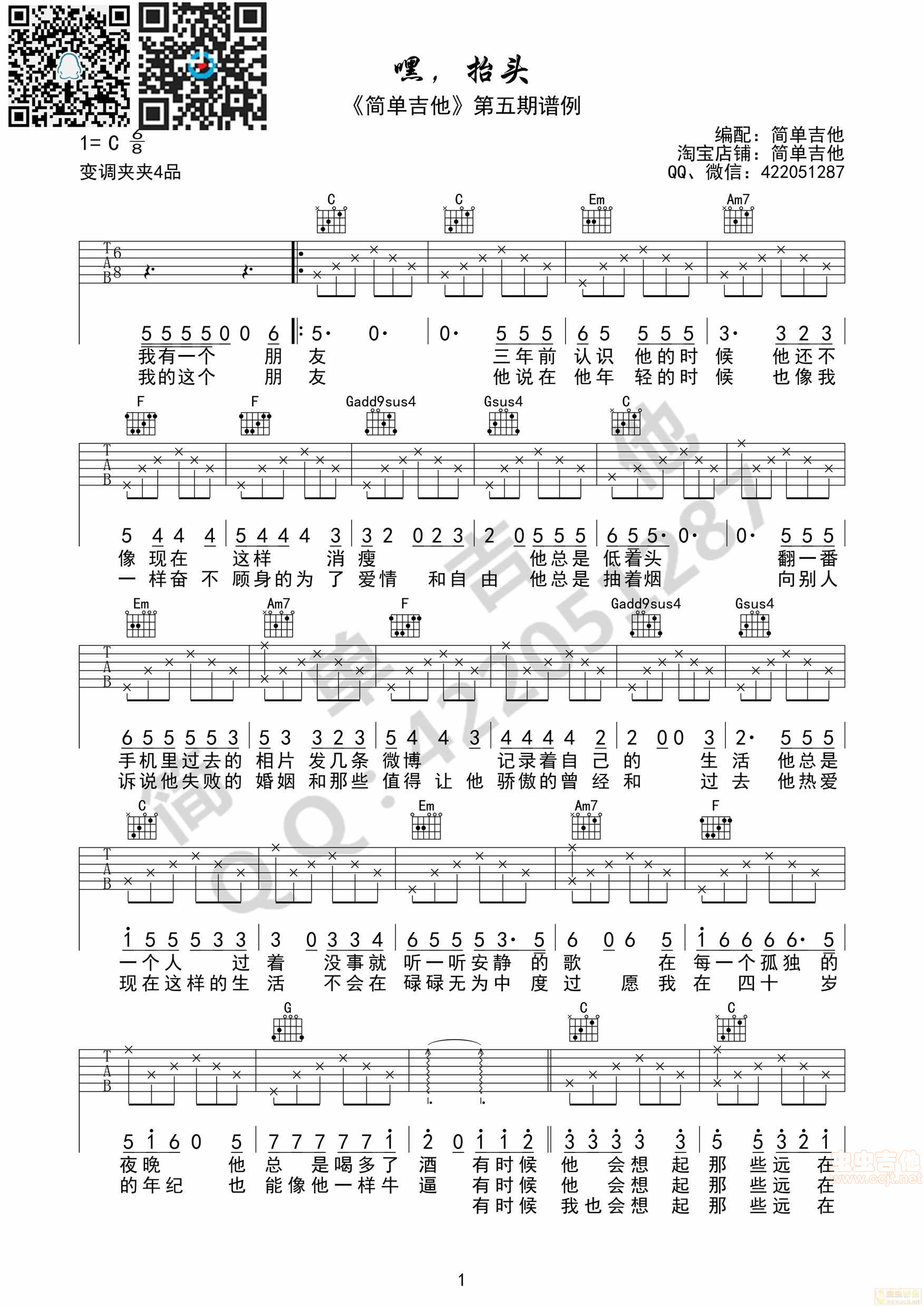 嘿,抬头吉他谱 - 吉他弹唱谱
