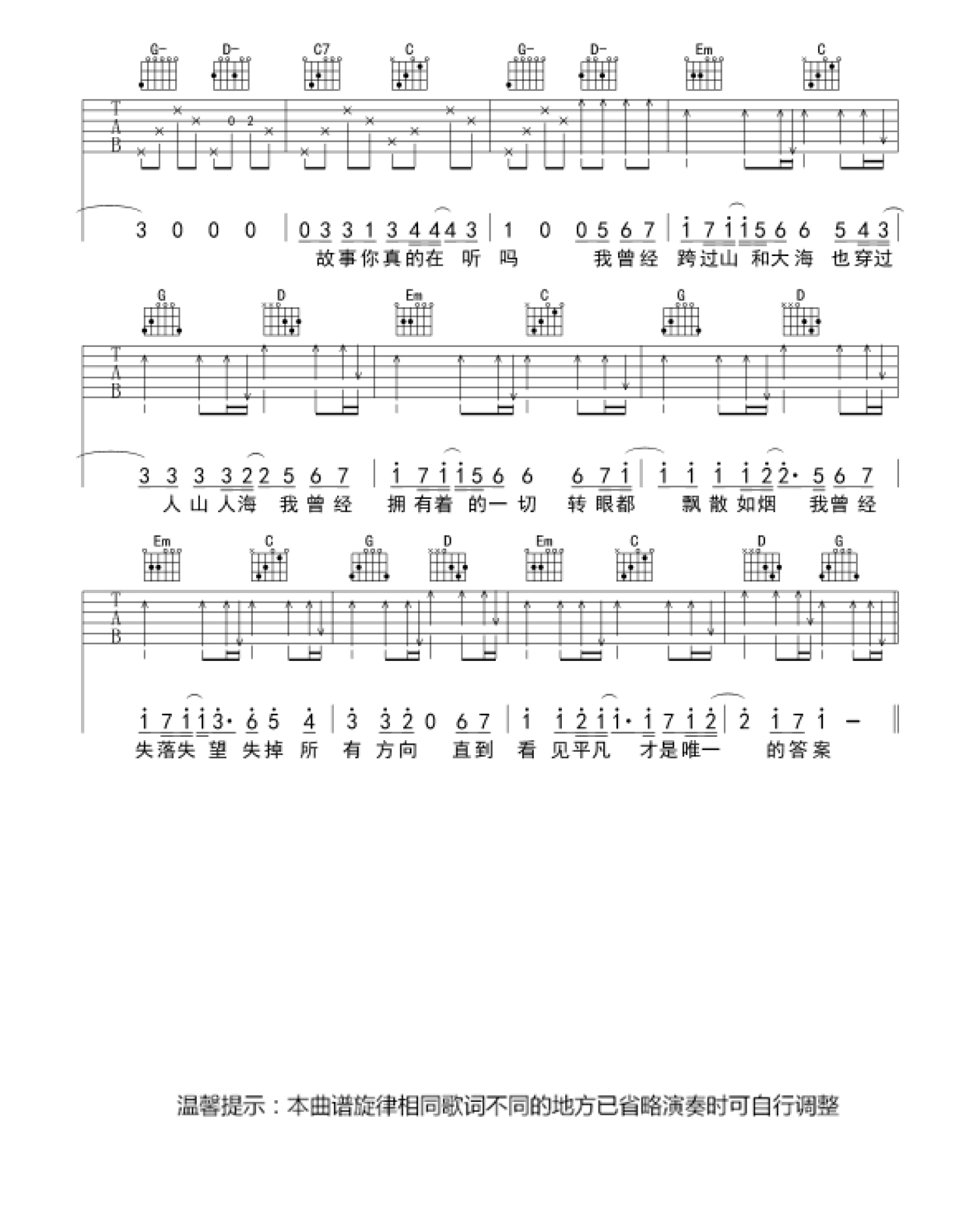 平凡之路吉他谱 - 朴树 - G调吉他弹唱谱