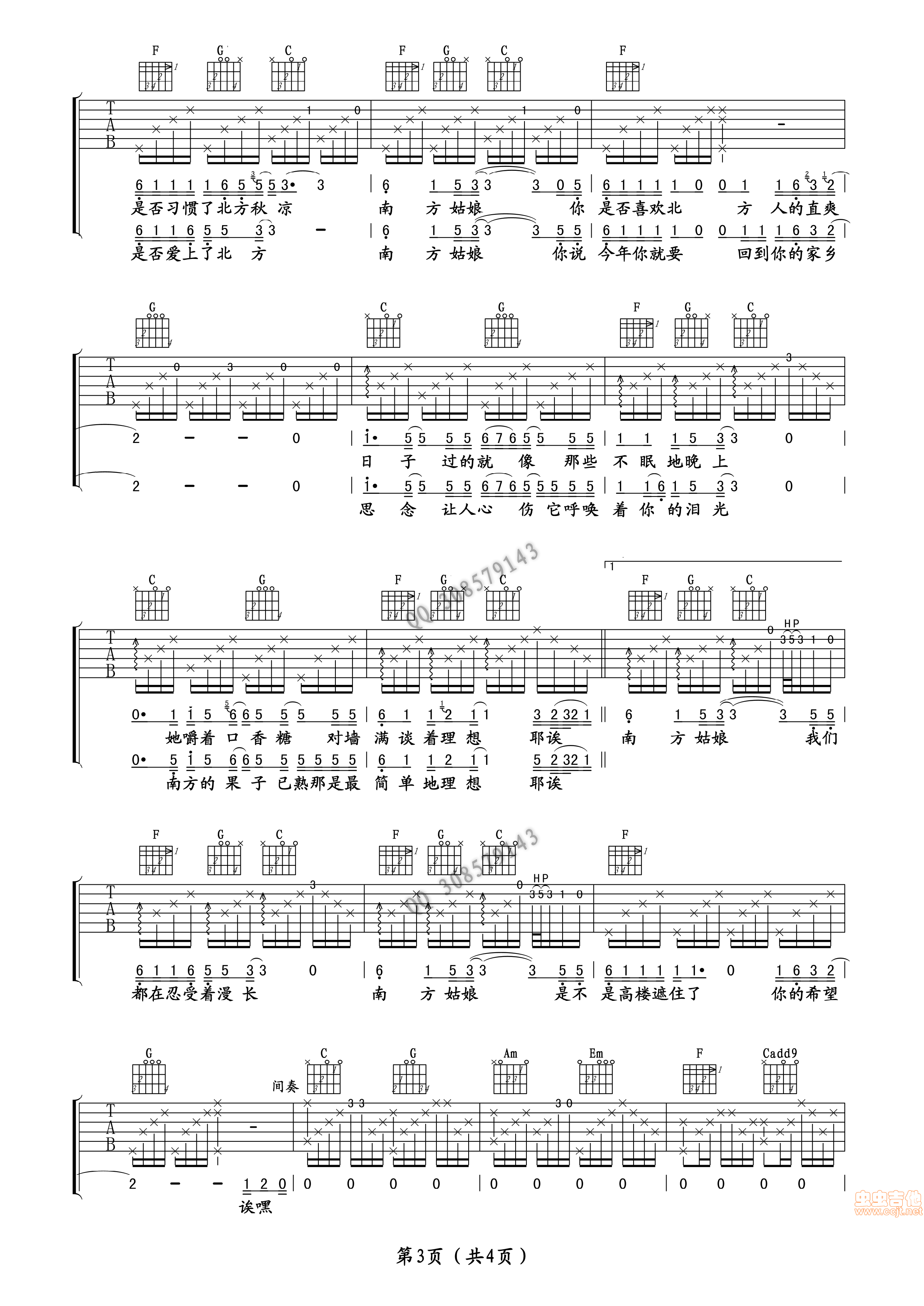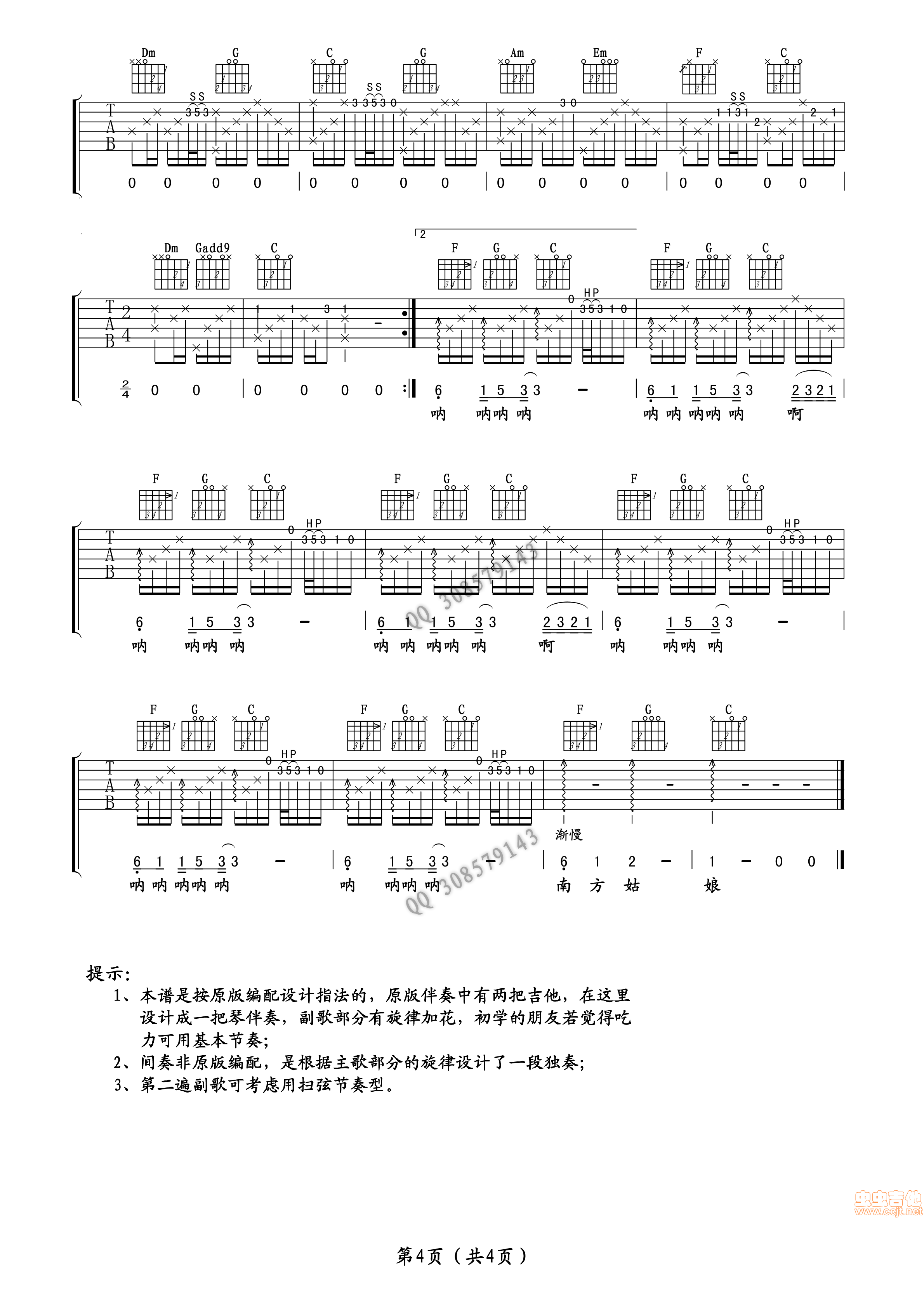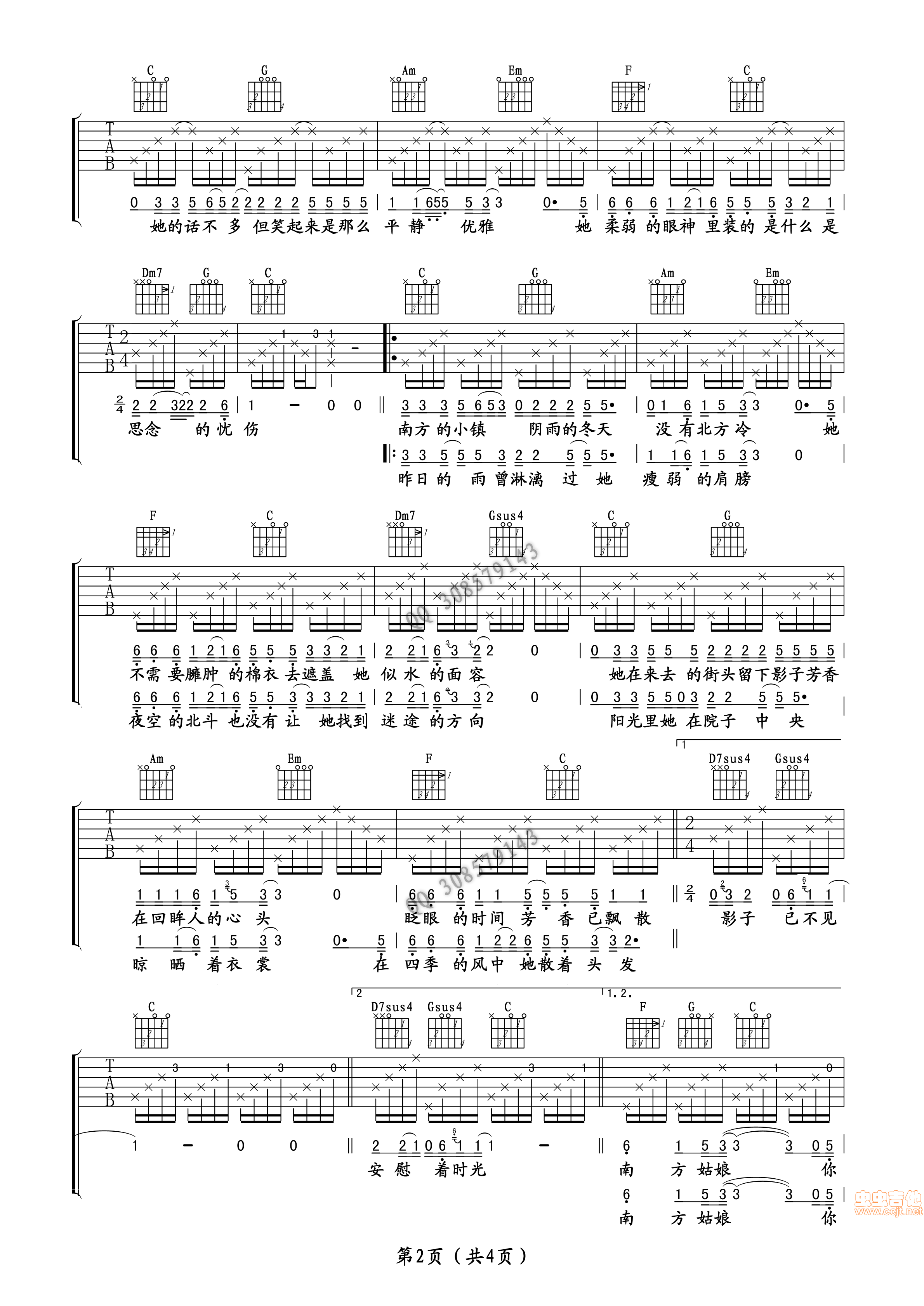 当前位置:琴谱网>吉他弹唱>南方姑娘