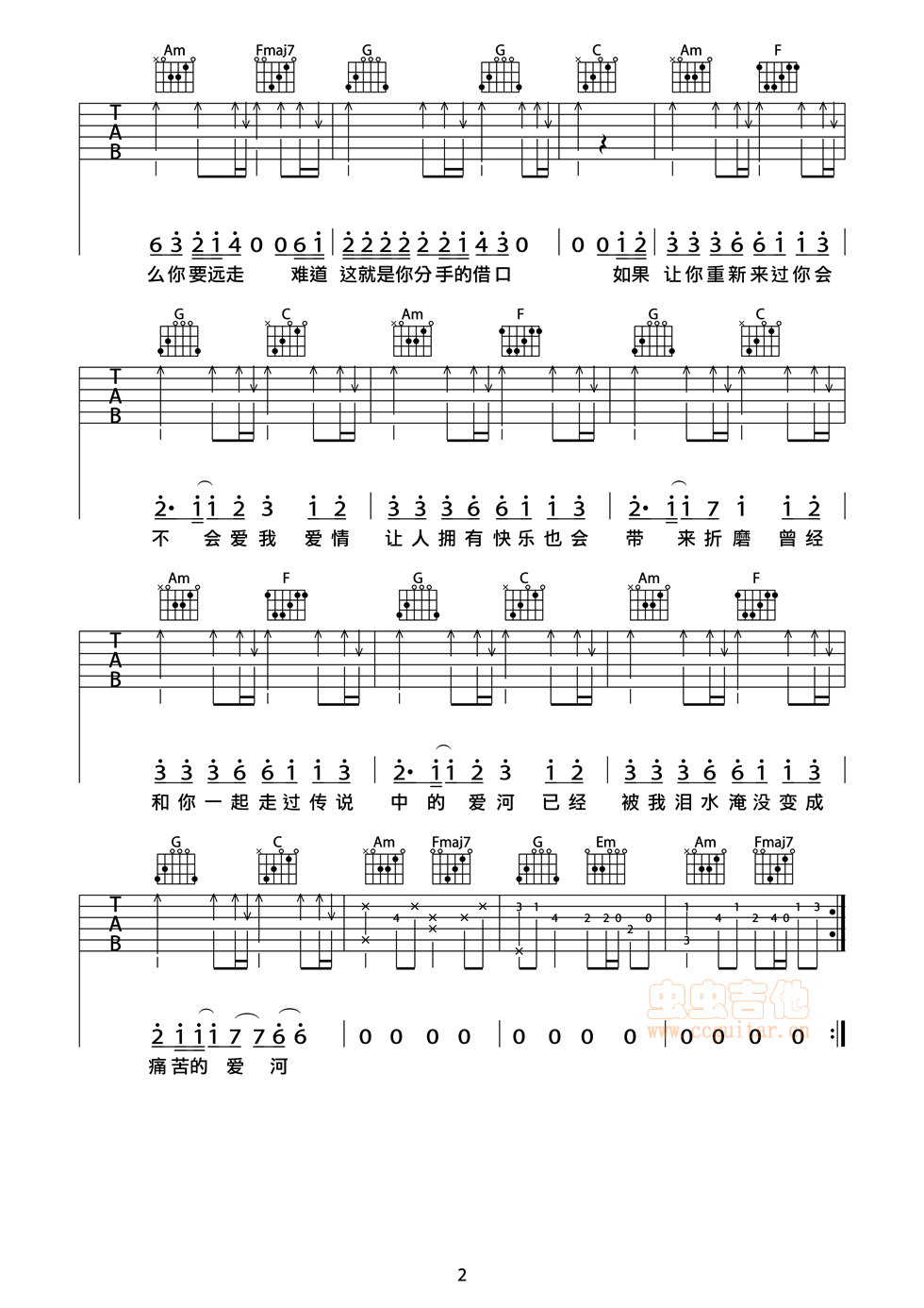 爱河吉他谱 - 吉他弹唱谱