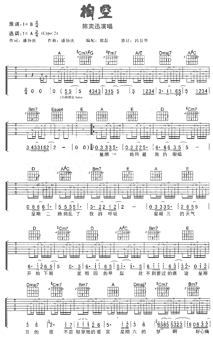当前位置:琴谱网>吉他弹唱>掏空