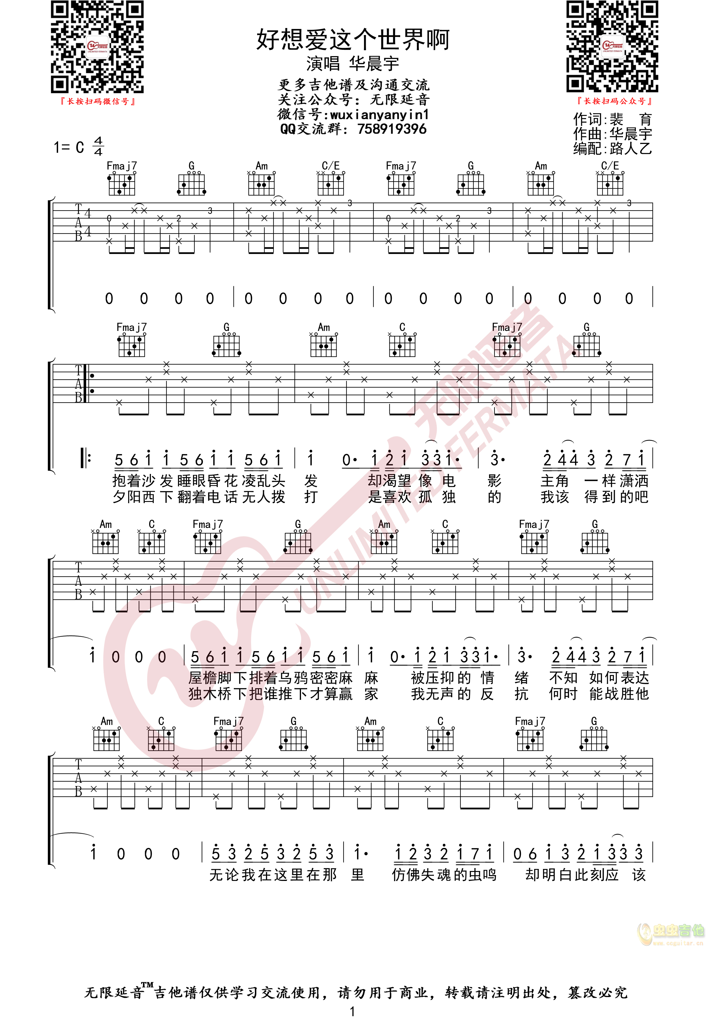 好想爱这个世界啊吉他谱 - 华晨宇 - 吉他弹唱谱