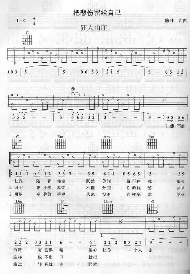 当前位置:琴谱网>吉他弹唱>把悲伤留给自己