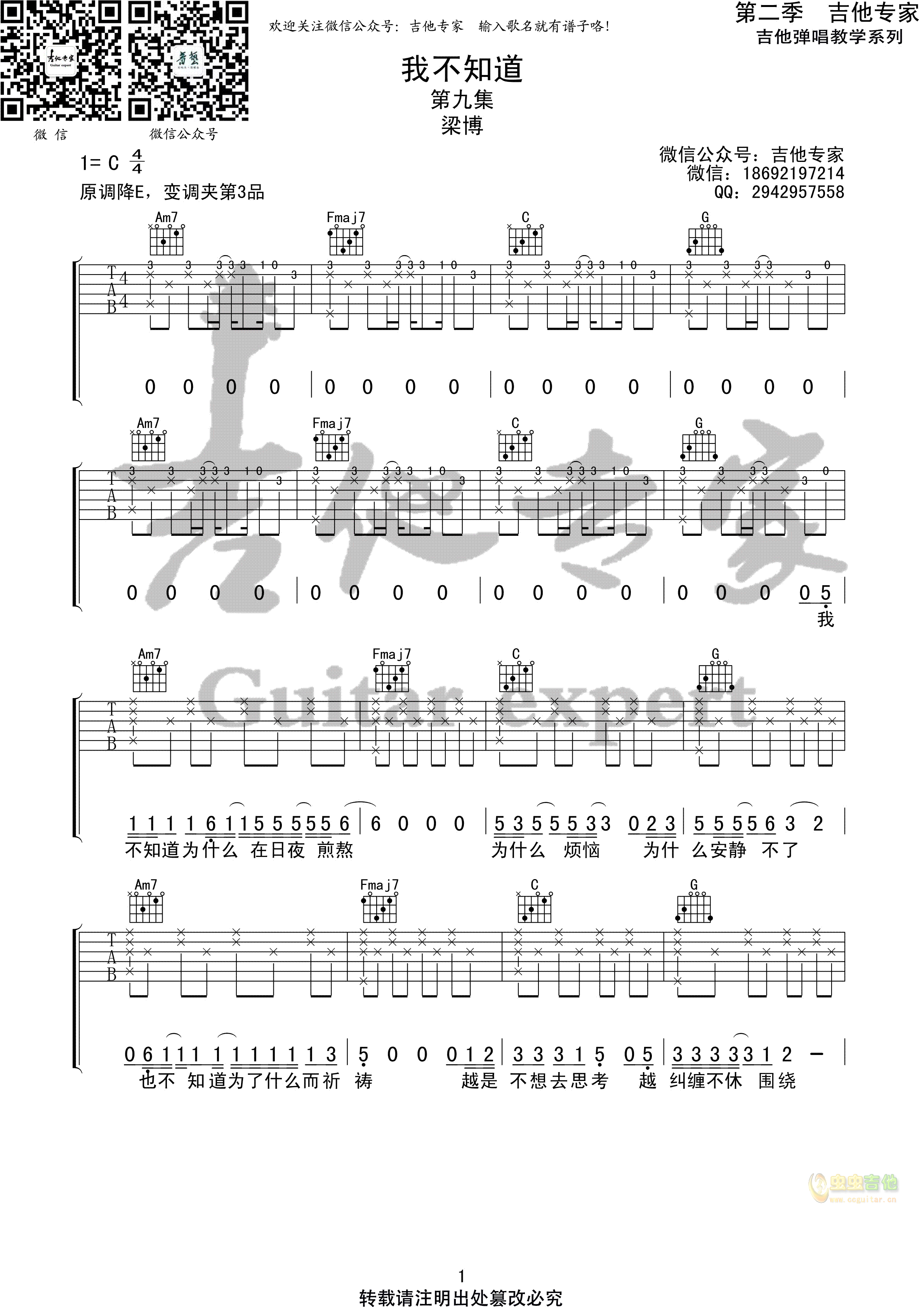 曲谱介绍:   《我不知道》,由梁博演唱,梁博作词、作曲、编曲。2019年6月28日,在爱奇艺华语唱作人生态挑战节目《我是唱作人》中首唱。