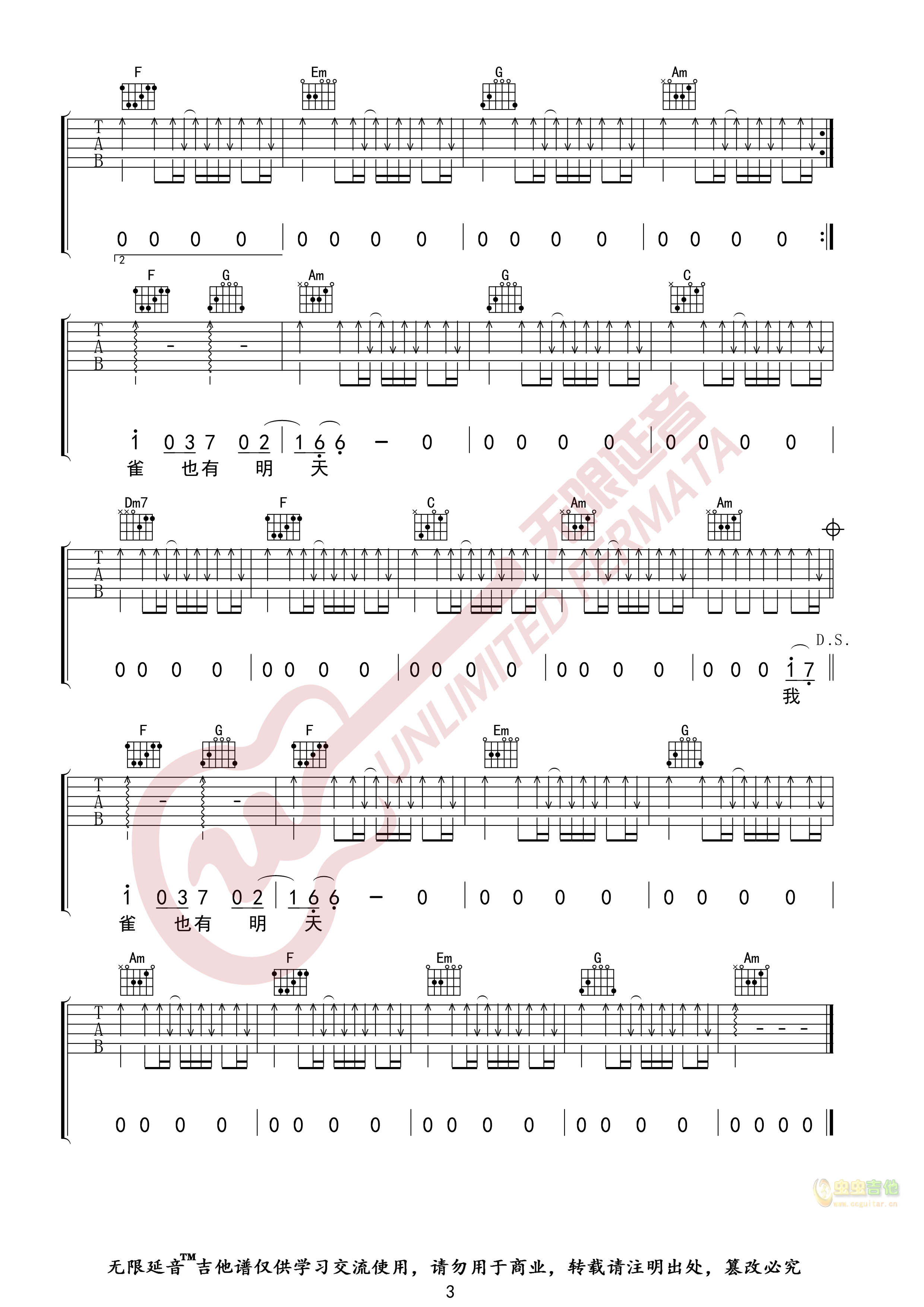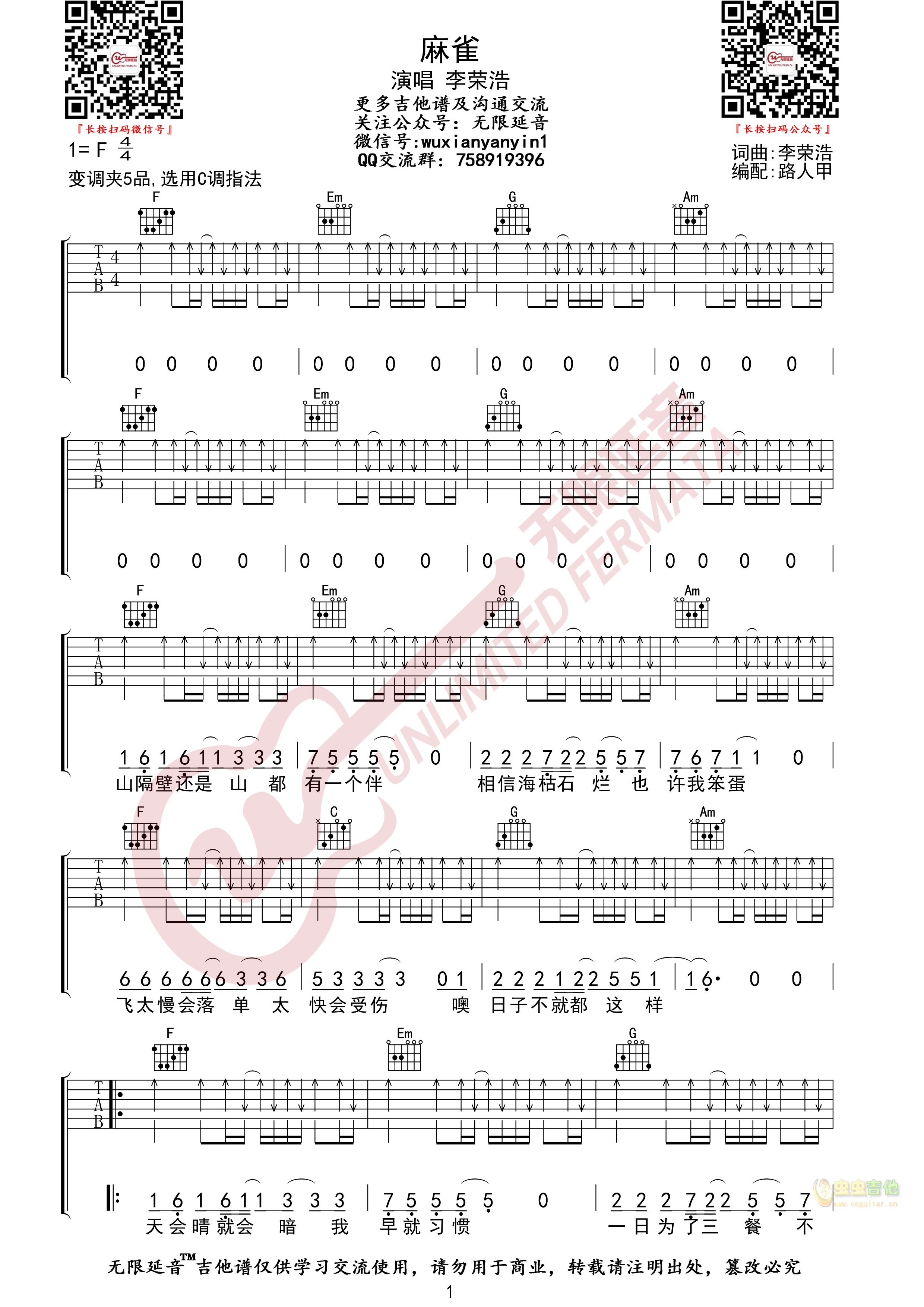 麻雀吉他谱 - 吉他弹唱谱
