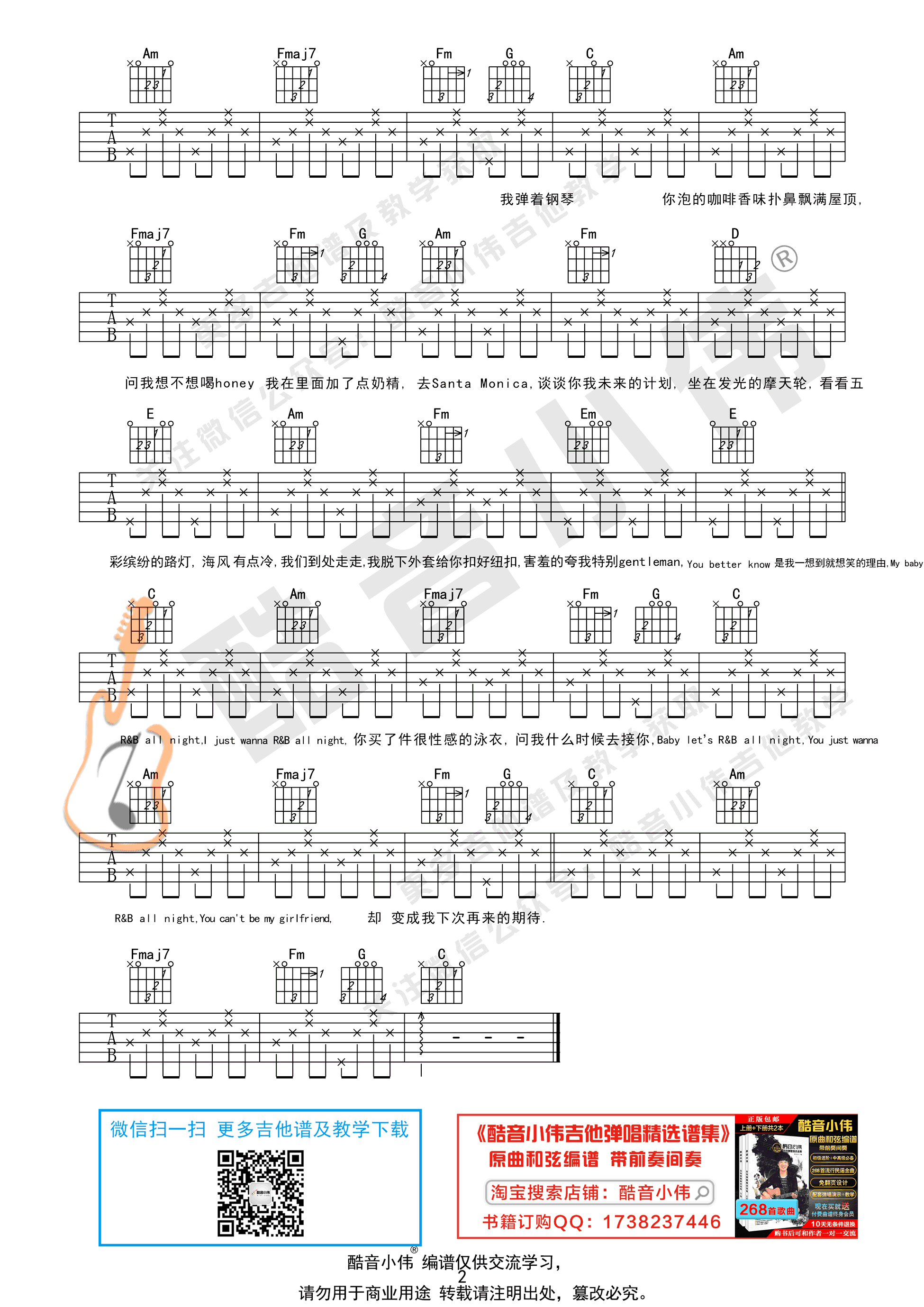 当前位置:琴谱网>吉他弹唱>R&B All Night