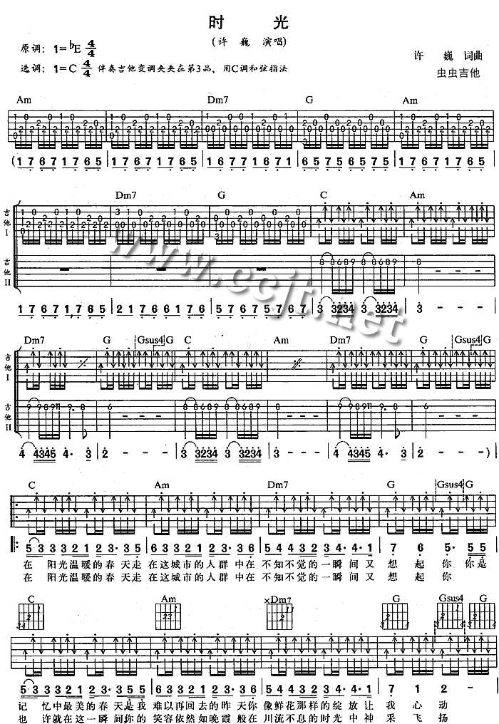 时光吉他谱 - 吉他弹唱谱