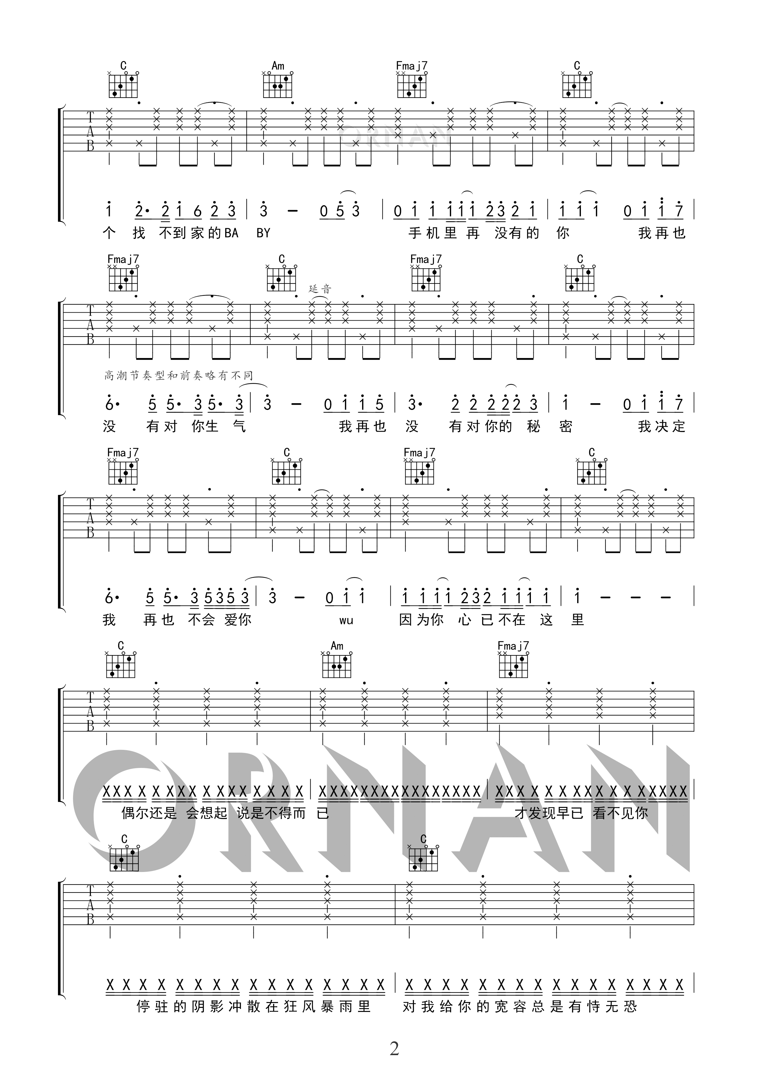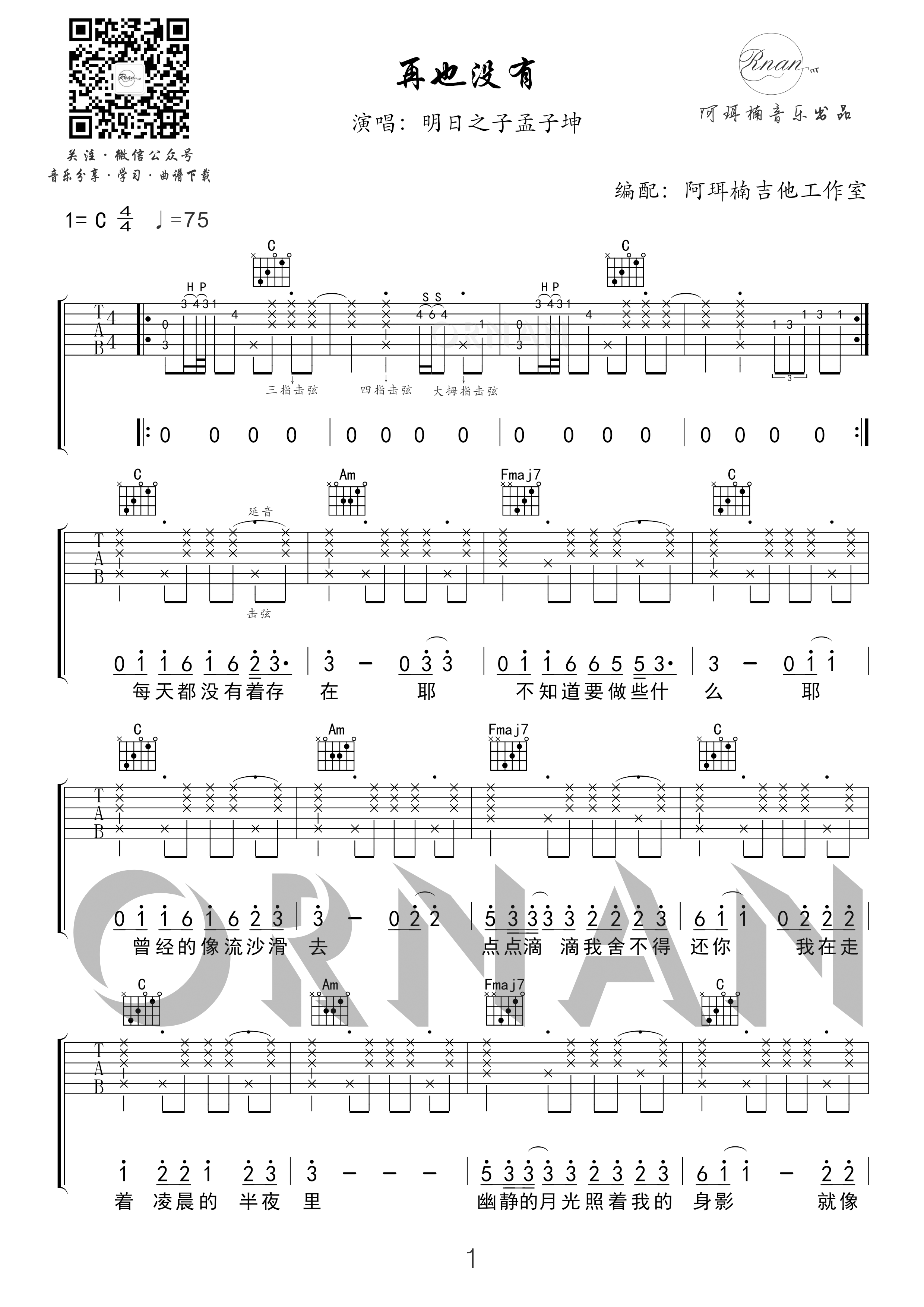 再也没有吉他谱 - 吉他弹唱谱
