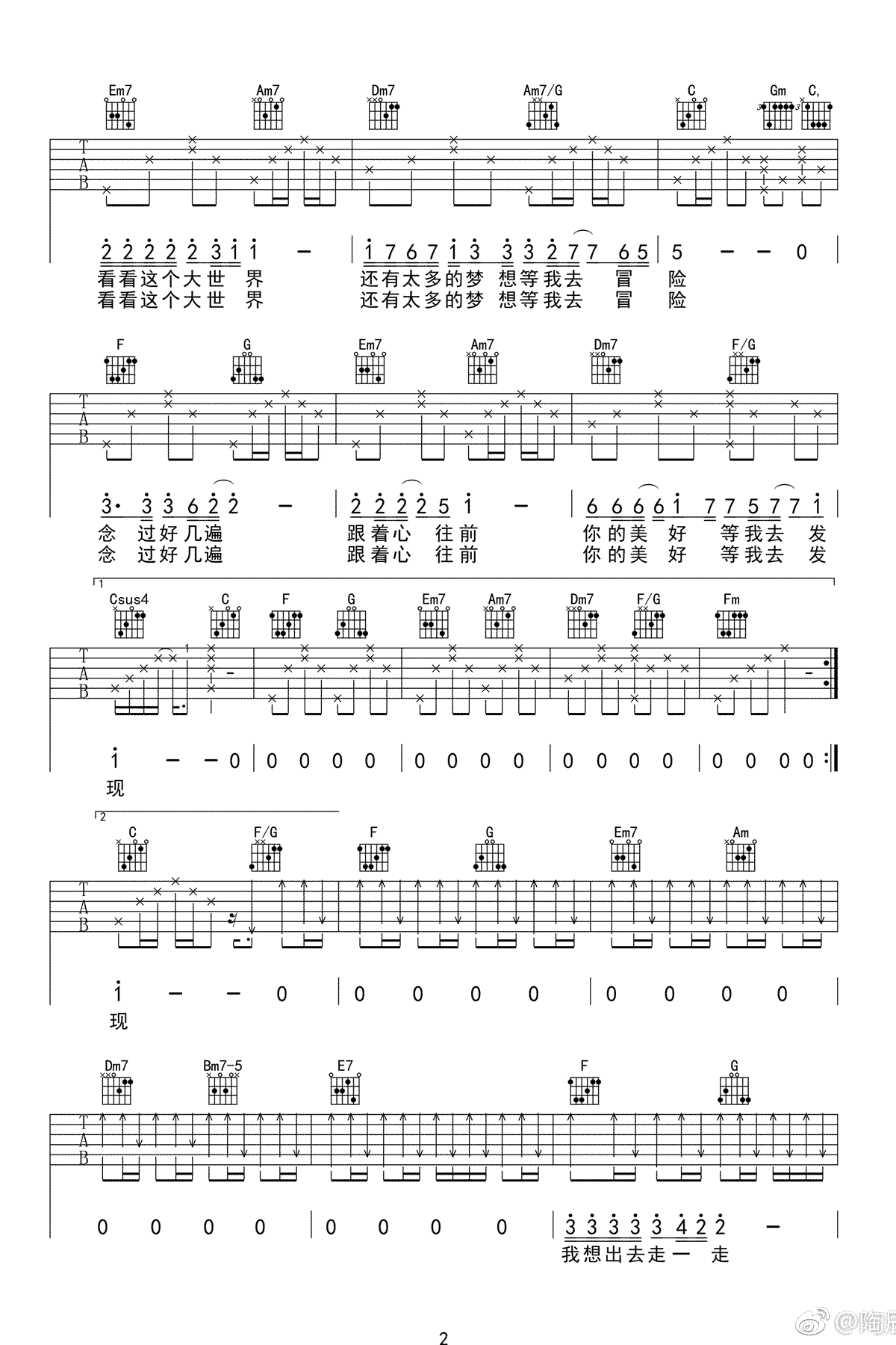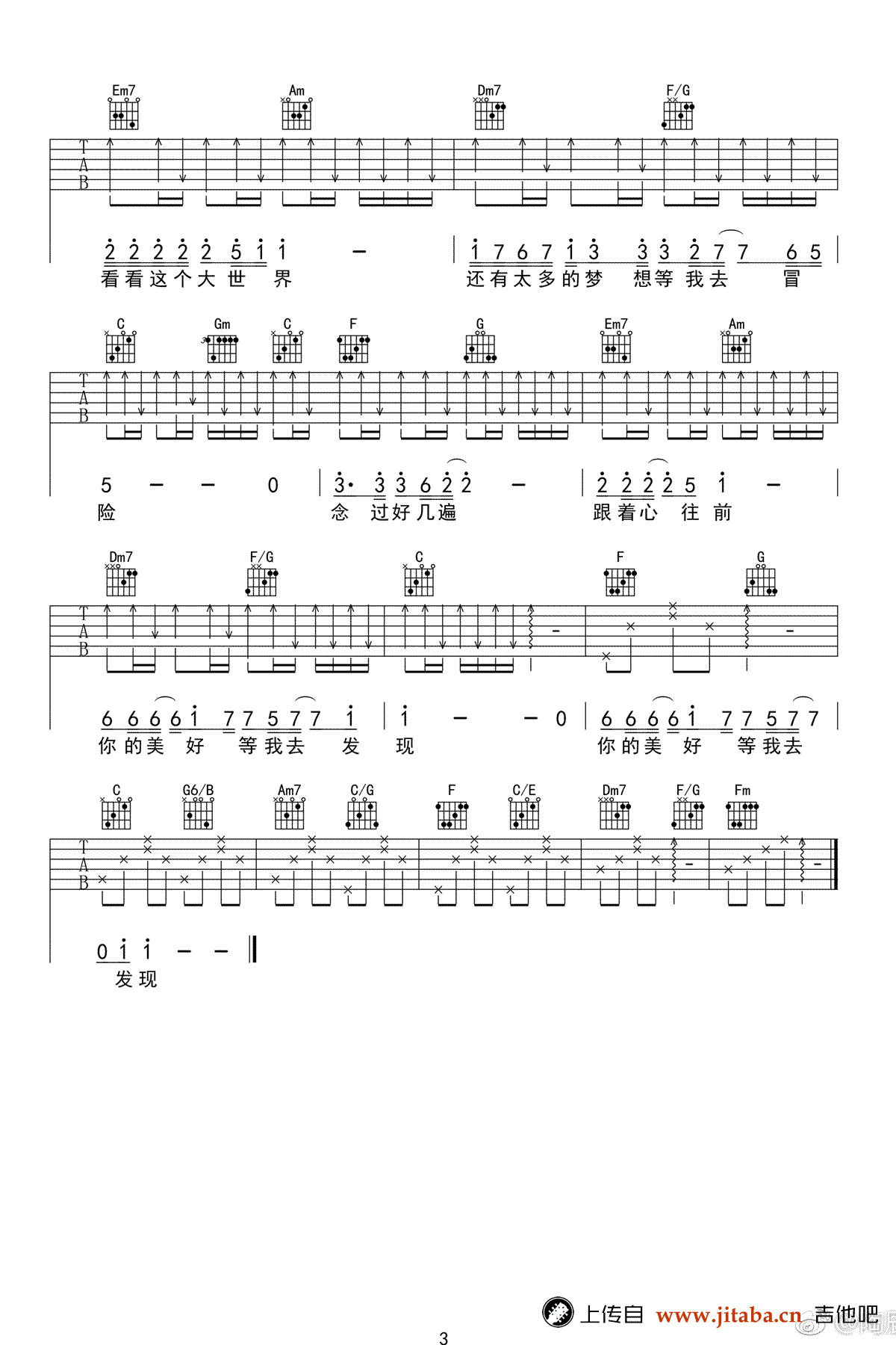 曲谱介绍: 《流浪》吉他弹唱谱,共有3张高清图谱。