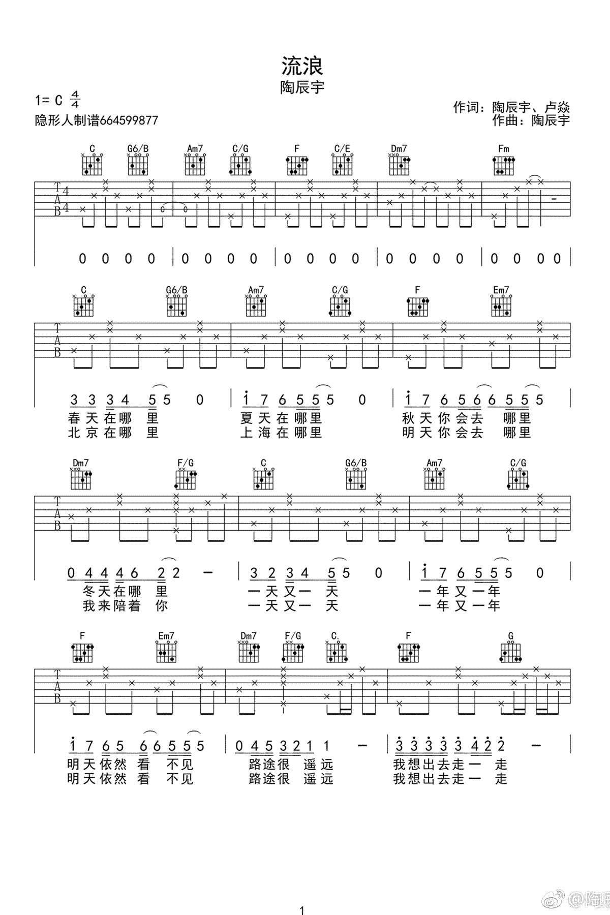 流浪吉他谱 - 吉他弹唱谱