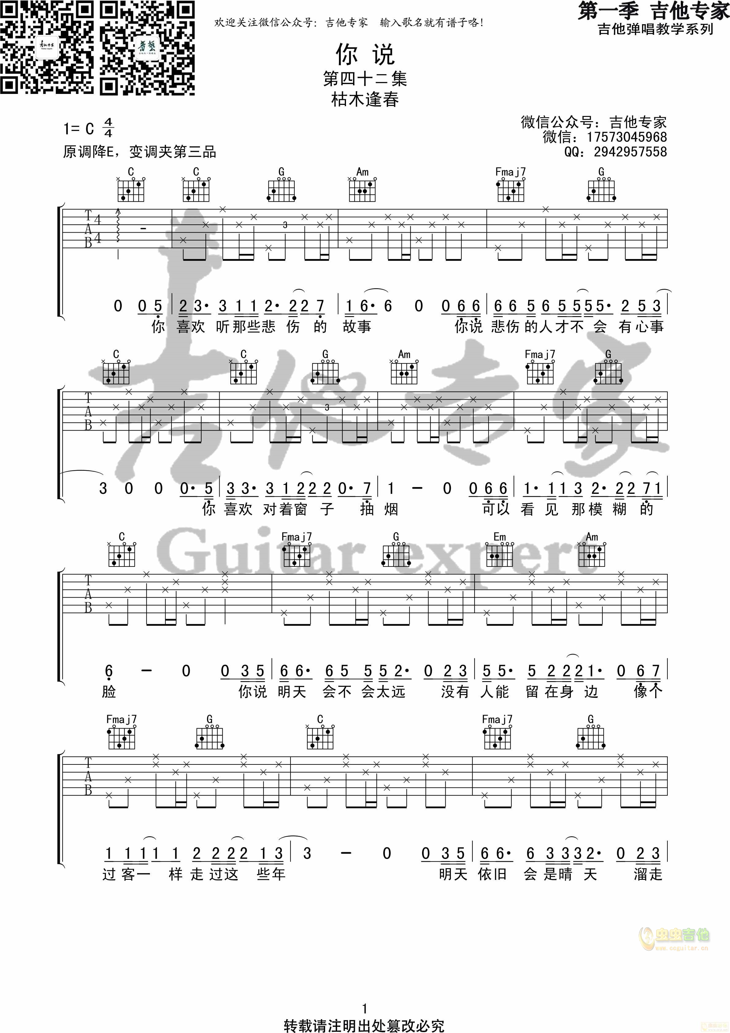 你说吉他谱 - 吉他弹唱谱
