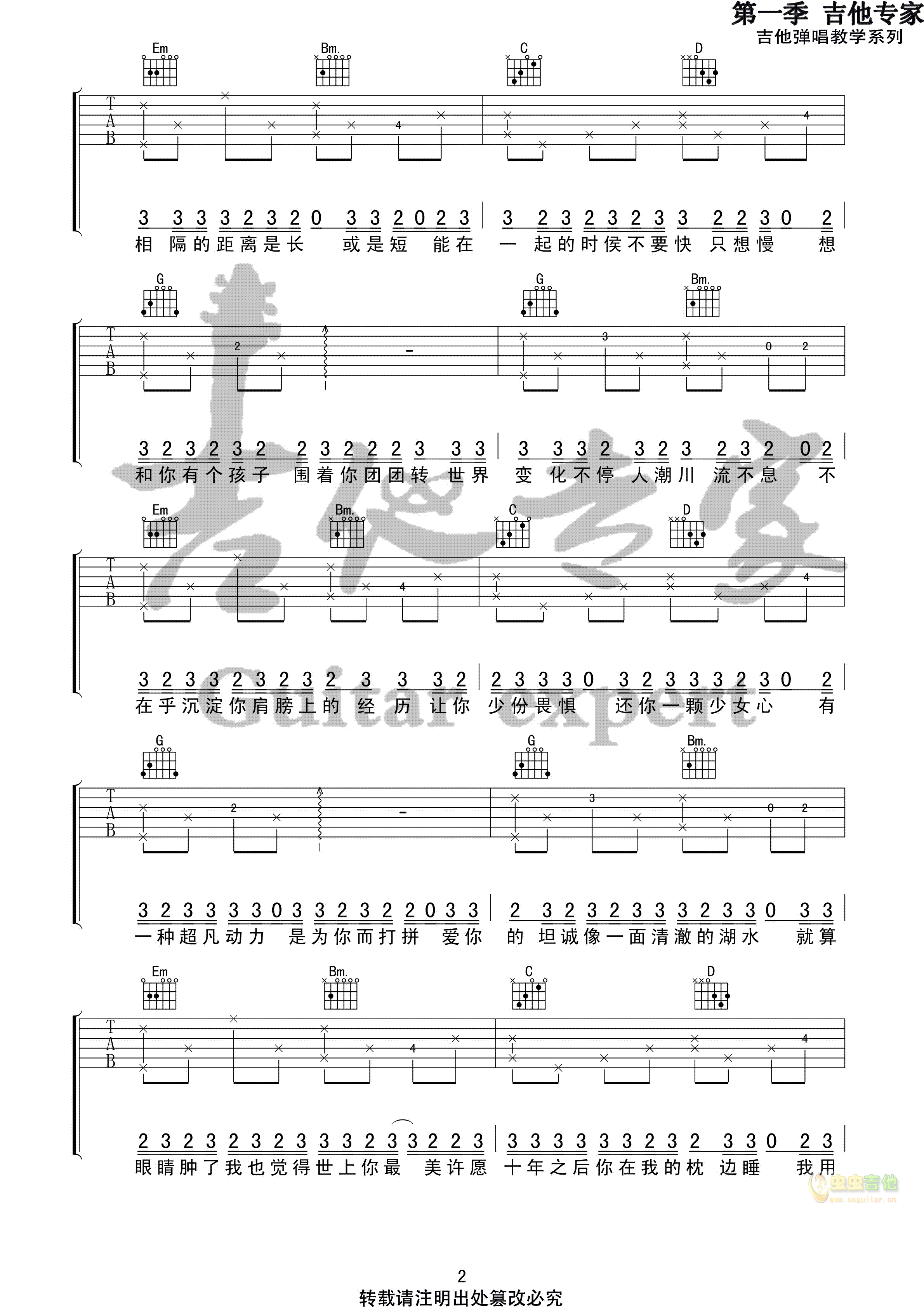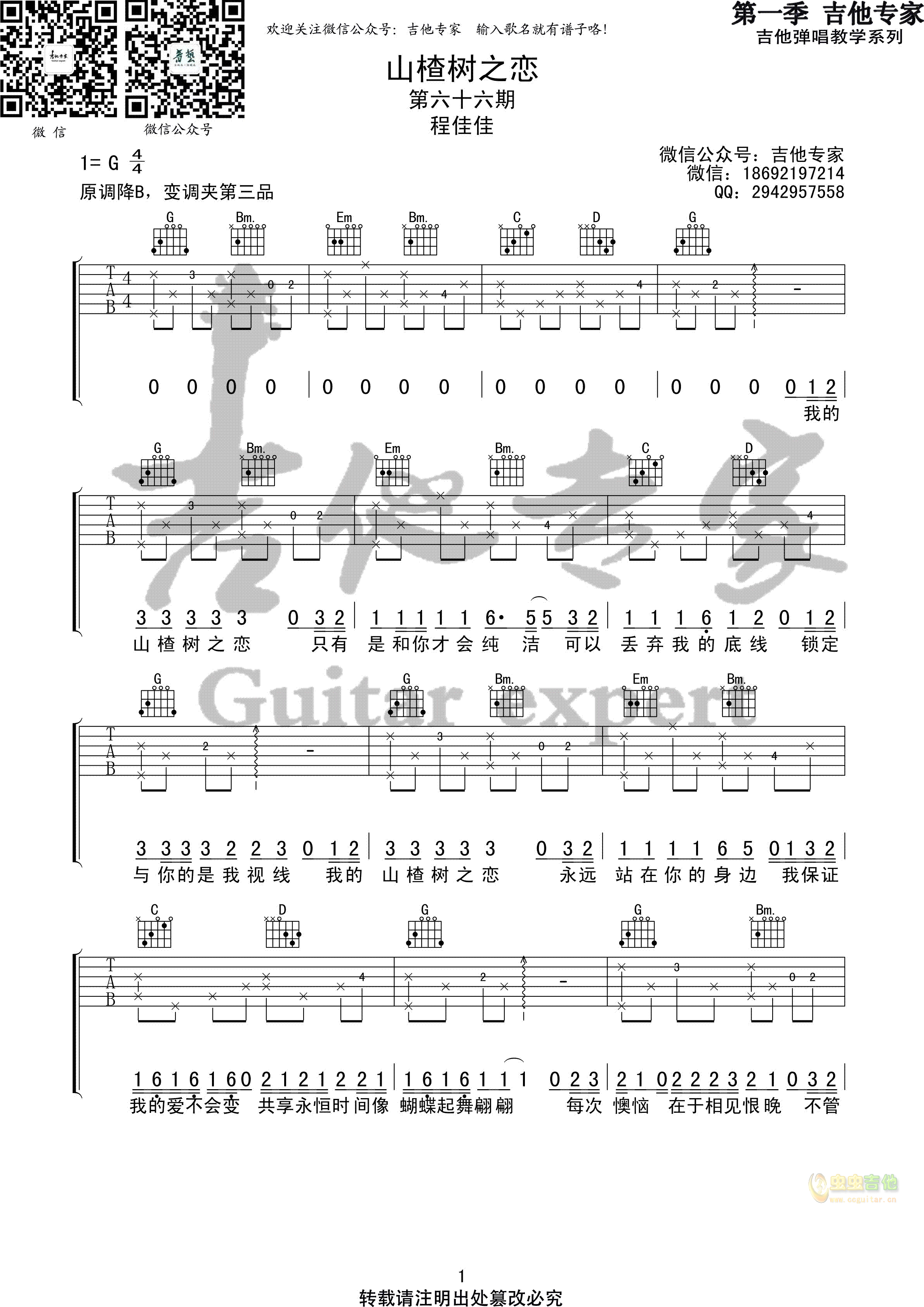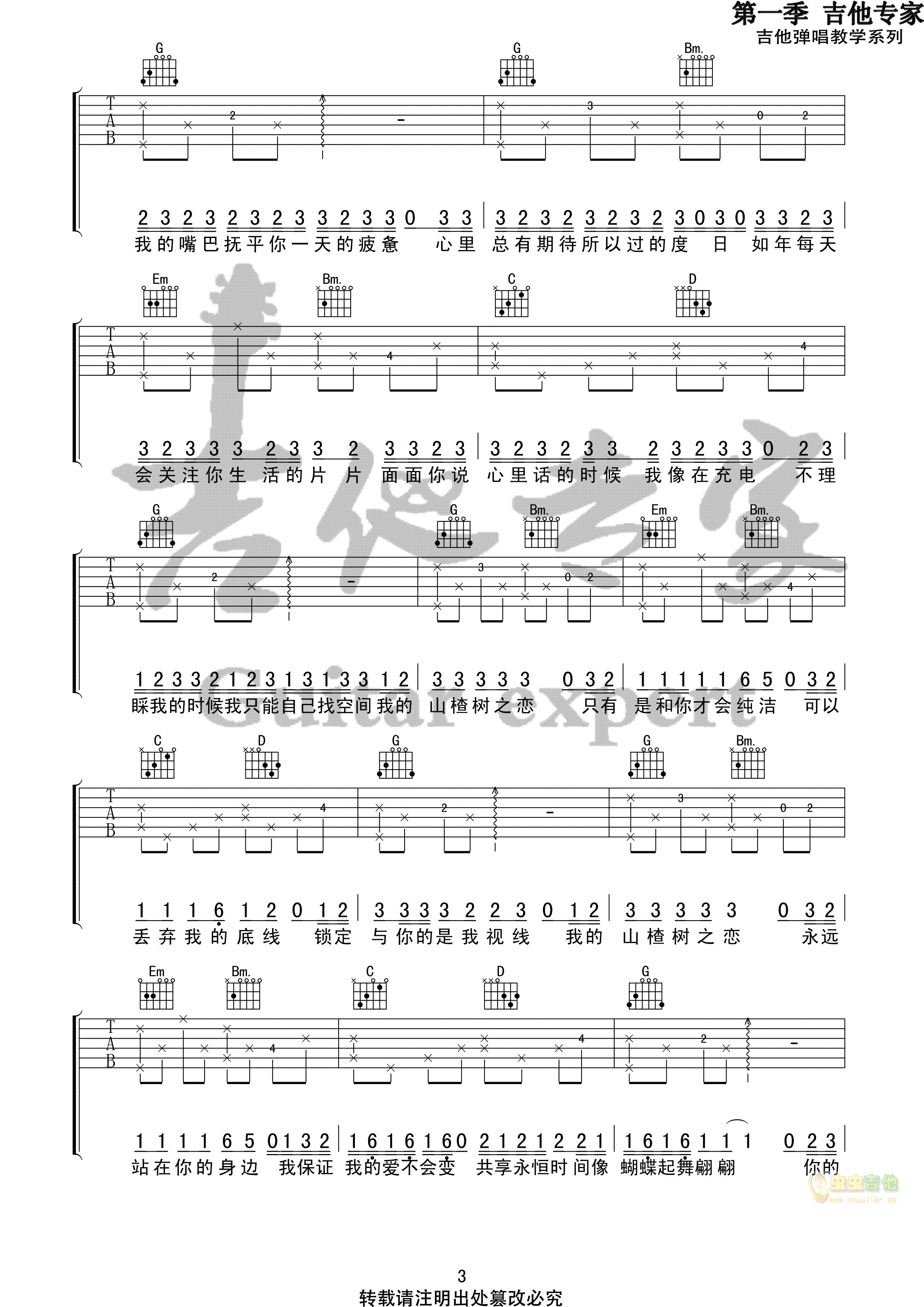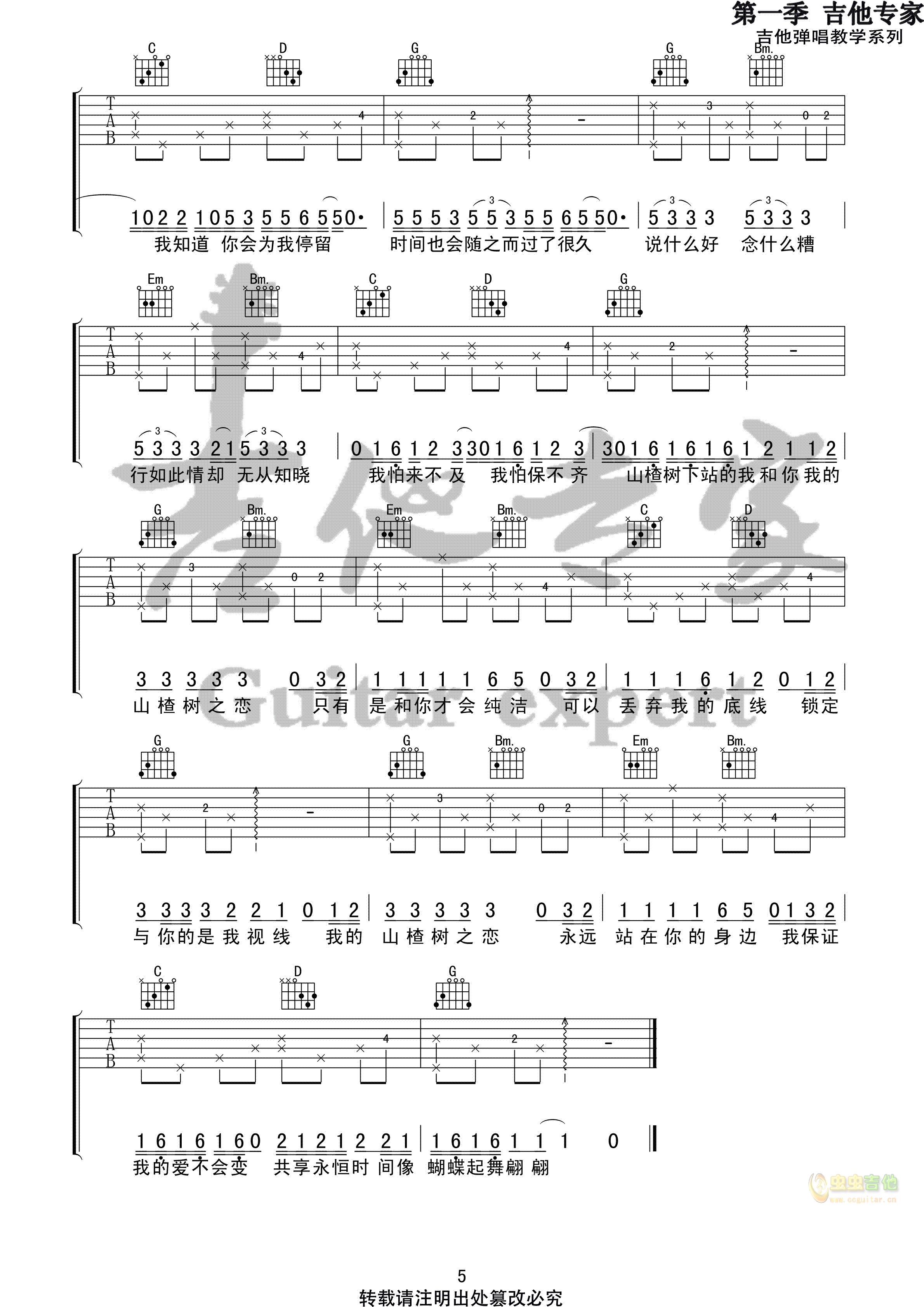 山楂树之恋吉他谱 - 吉他弹唱谱