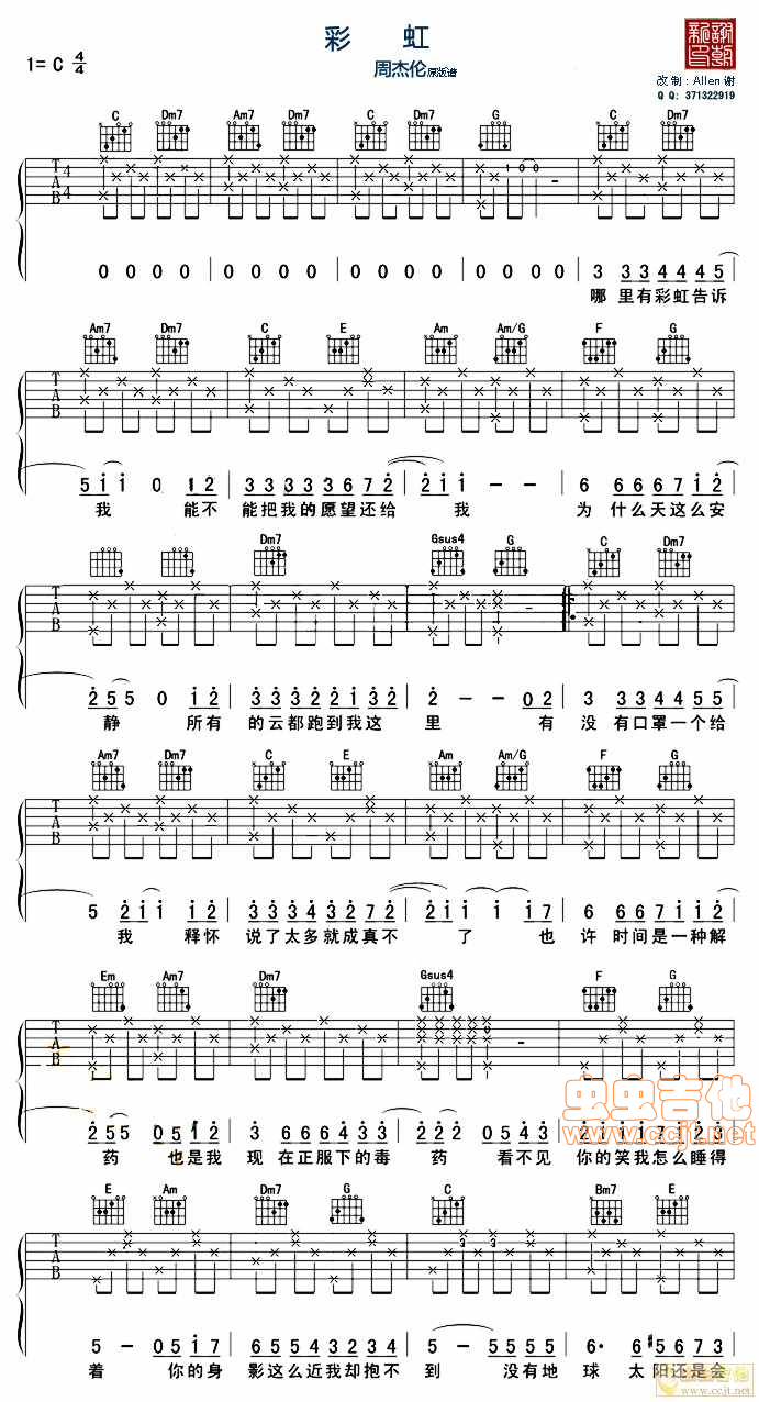 曲谱介绍: 《彩虹》吉他弹唱谱,共有2张高清图谱,免翻页排版设计。