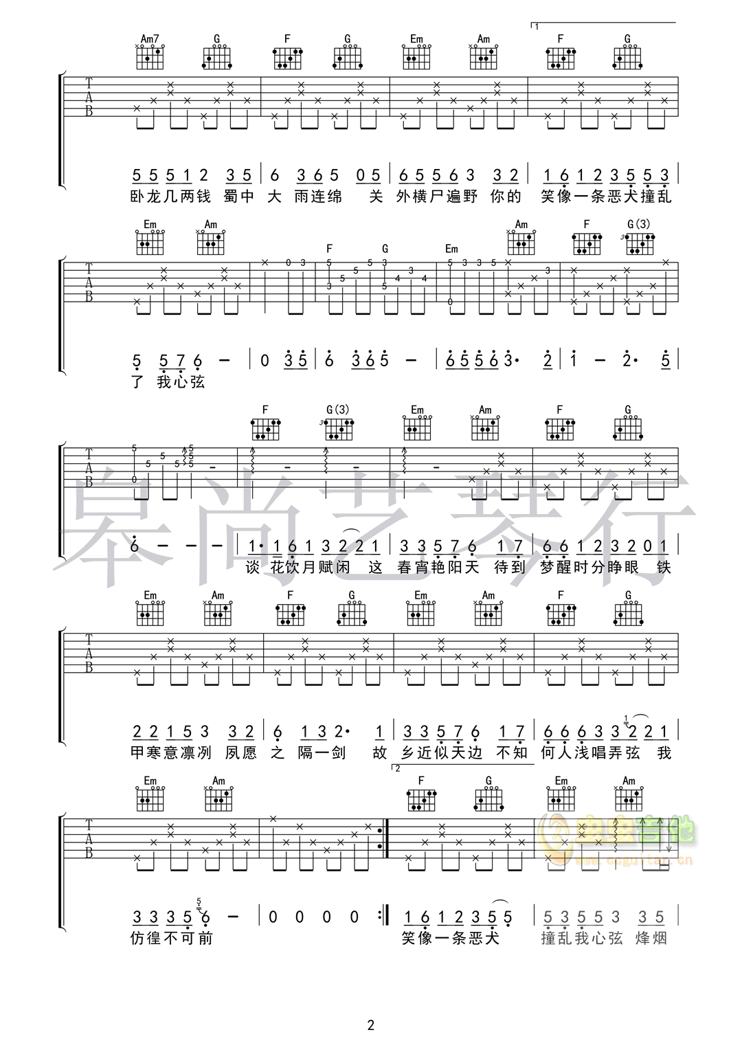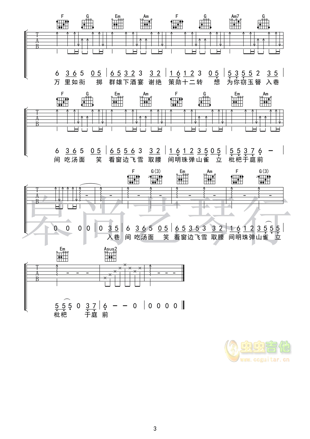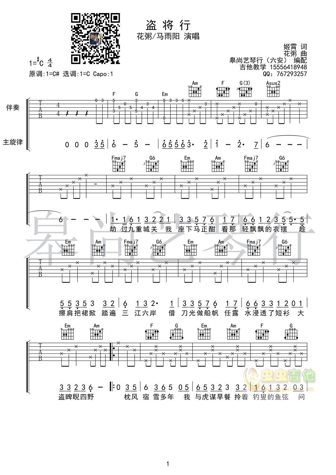 曲谱介绍: 《盗将行》吉他弹唱谱,共有3张高清图谱。