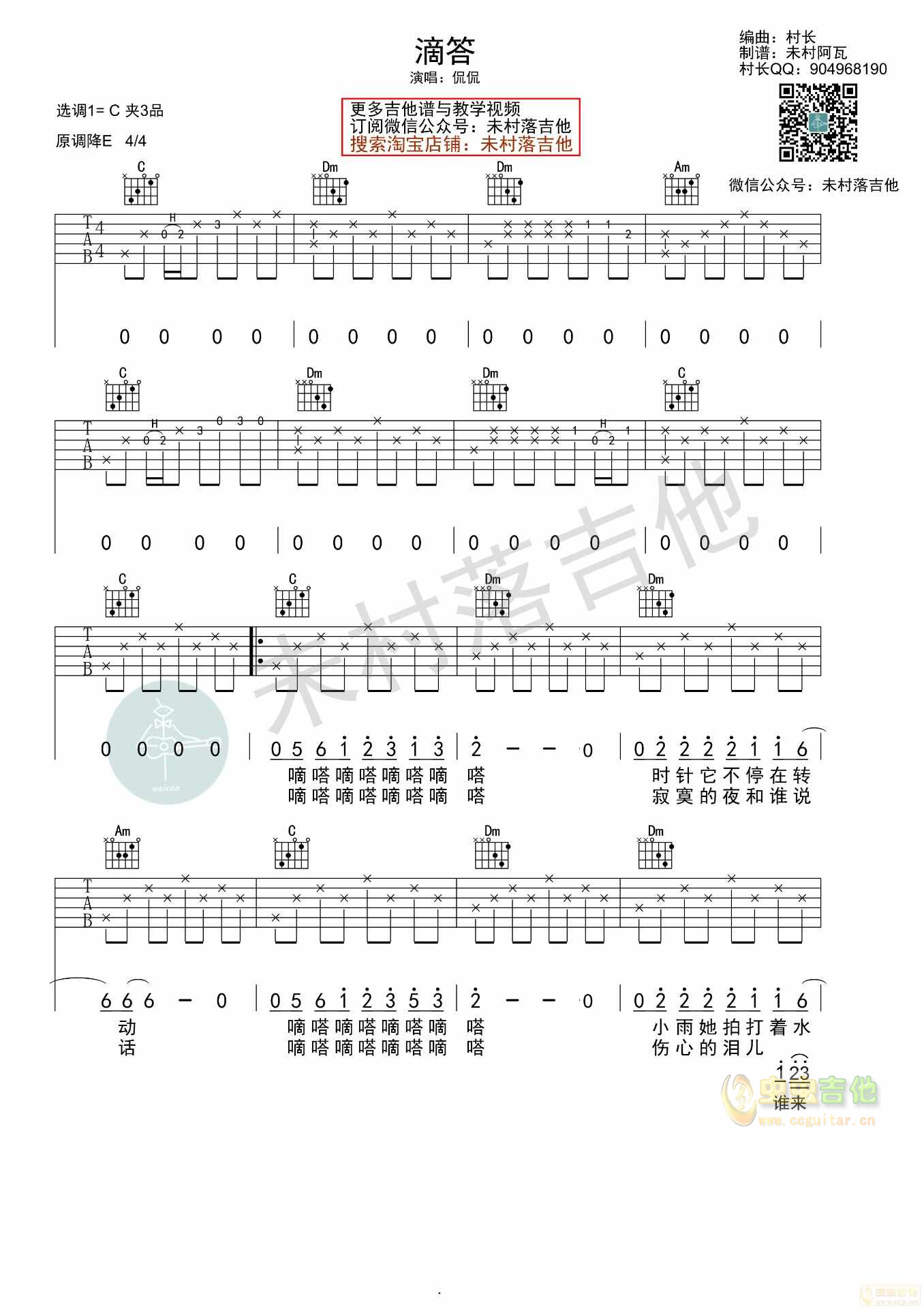 滴答吉他谱 - 侃侃 - 吉他弹唱谱