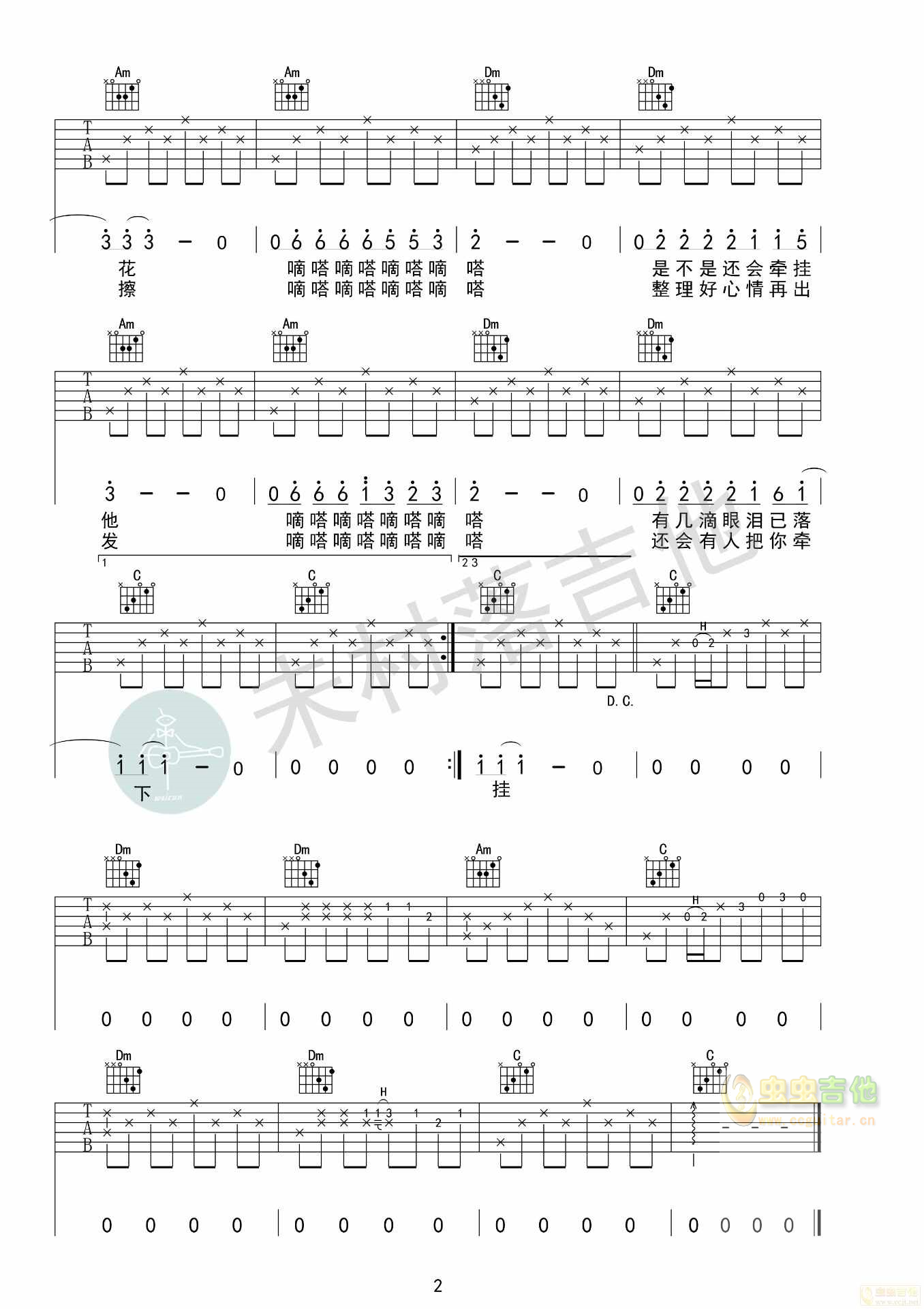 曲谱介绍: 侃侃《滴答》吉他弹唱谱,共有2张高清图谱,免翻页排版设计。