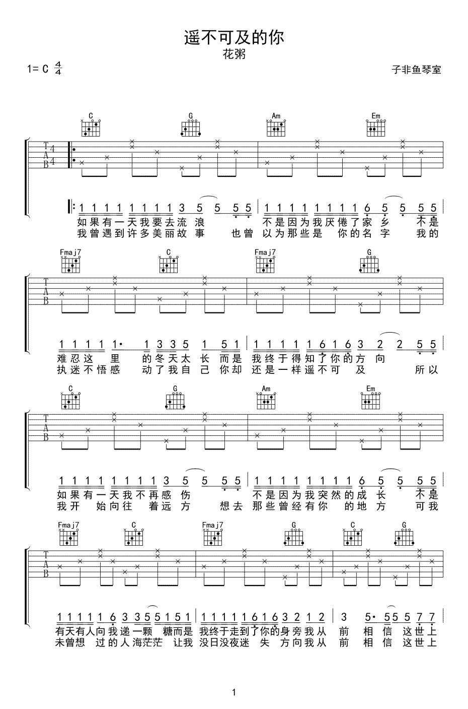 当前位置:琴谱网>吉他弹唱>遥不可及的你