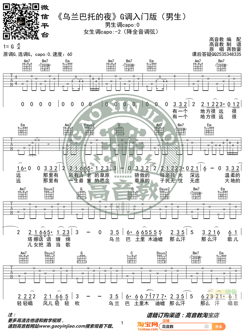 乌兰巴托的夜吉他谱 - 吉他弹唱谱
