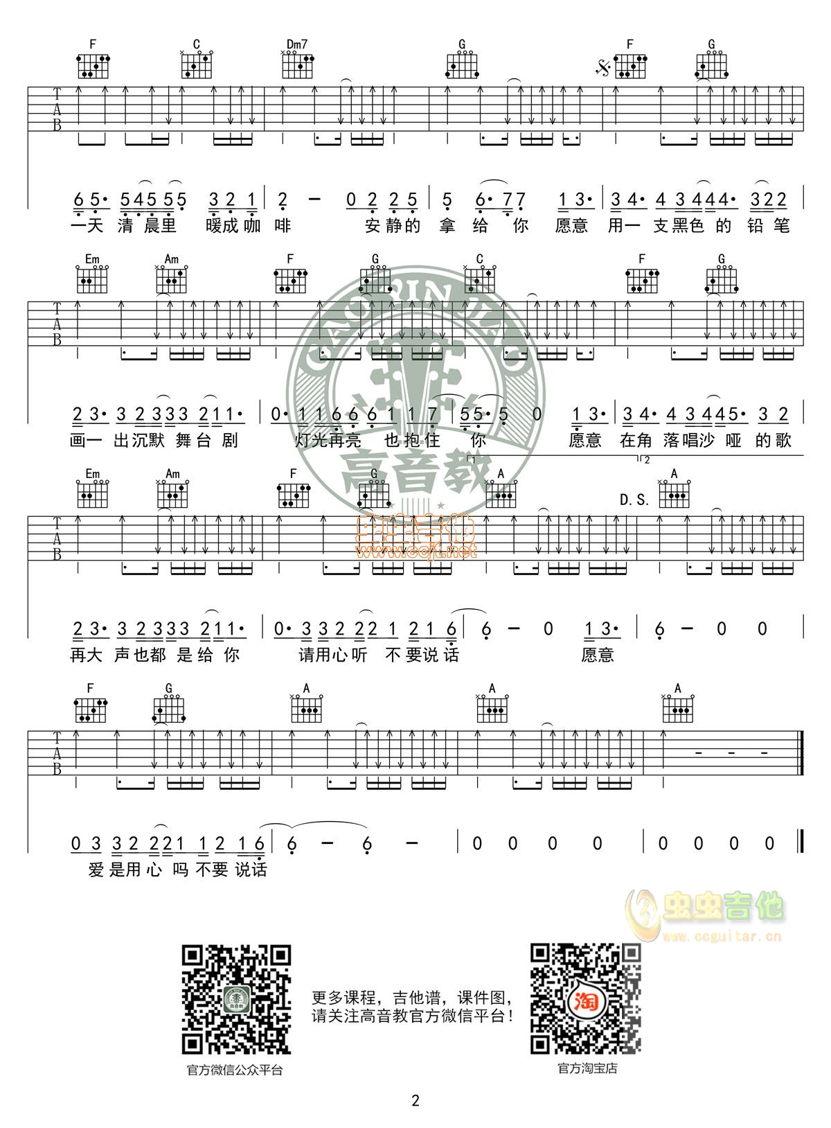 不要说话吉他谱 - 吉他弹唱谱