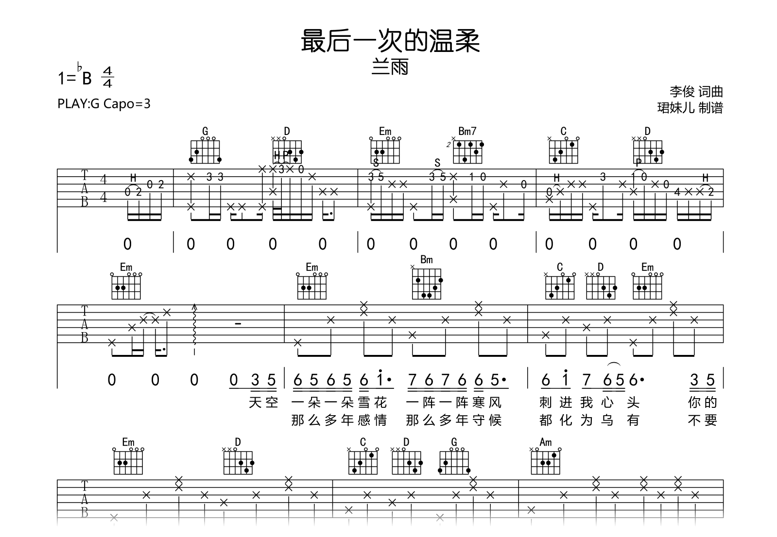 最后一次的温柔吉他谱 - 兰雨 - G调吉他弹唱谱
