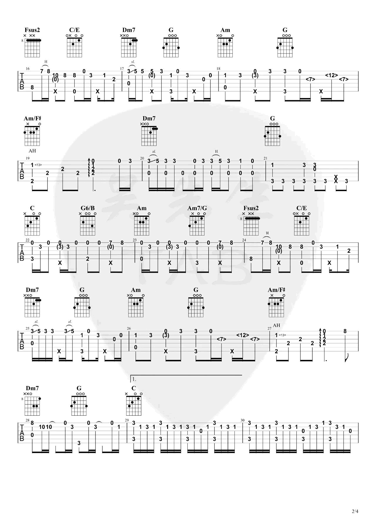 间距吉他谱 - EN - 吉他独奏谱