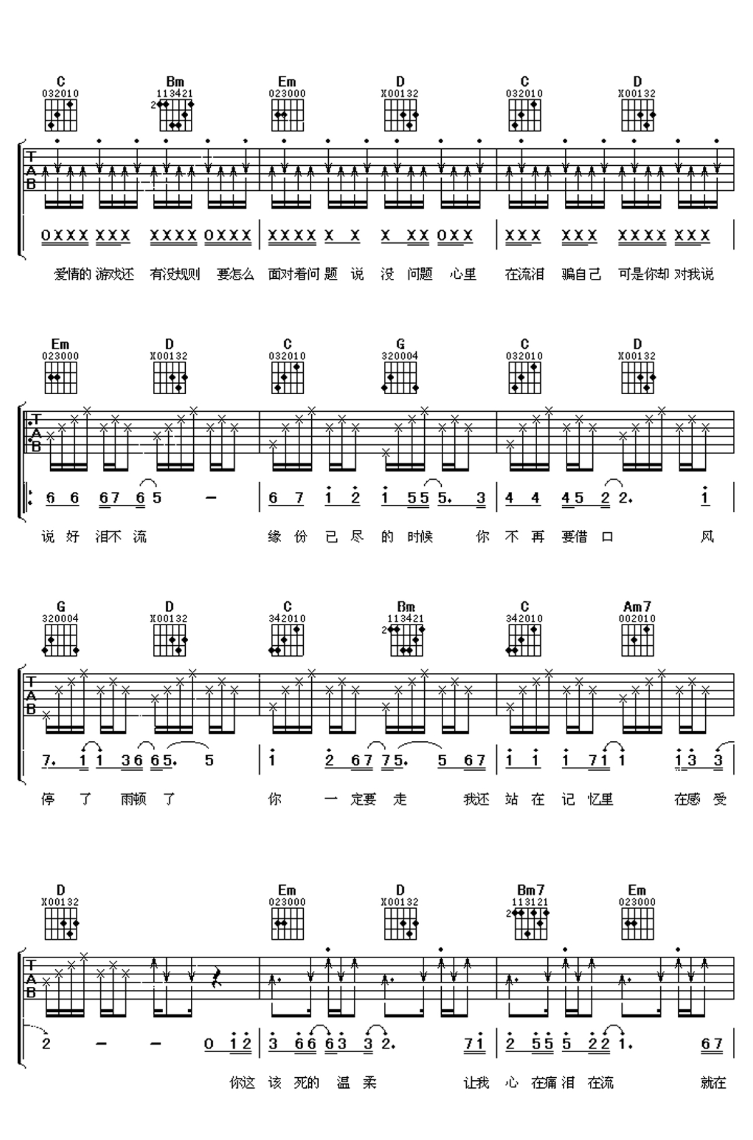 曲谱介绍: 该死的温柔吉他弹唱谱子,本谱为图片吉他谱格式,选用G调,您可以方便参考本页图片和弦示意图和扫弦指法进行吉他弹奏。马天宇的该死的温柔:B/RAP风格说唱歌词念白:Iputitdownonmylife;ThatIloveyoufromthebottomofmyheart;Causeyouthesweetestthingeverinmylife;IcrySomanytimes;Somanytruelies;mtheonethatwillneverevermakeyoucryandcry;让我们走完这一次完美的结局,好像当初的约定爱着对方一直到老;问自己爱情的游戏还有没有规则;要怎么面对着问题说没问题,心里在流泪骗自己,可是你却对我说