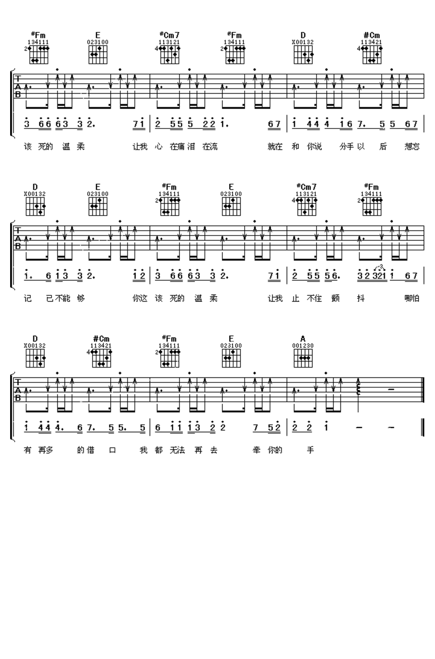当前位置:琴谱网>吉他弹唱>该死的温柔