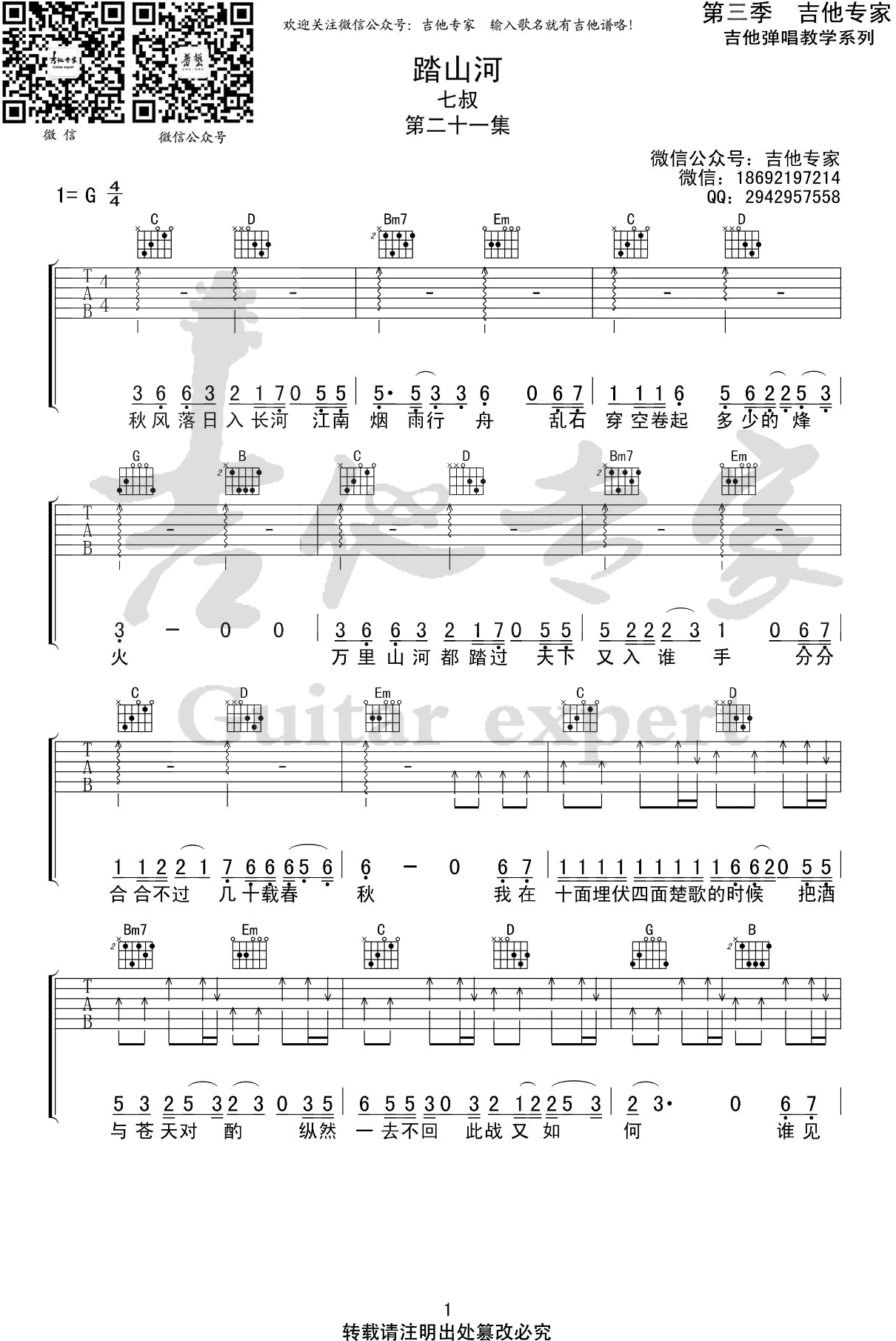 踏山河吉他谱 - 是七叔呢 - G调吉他弹唱谱
