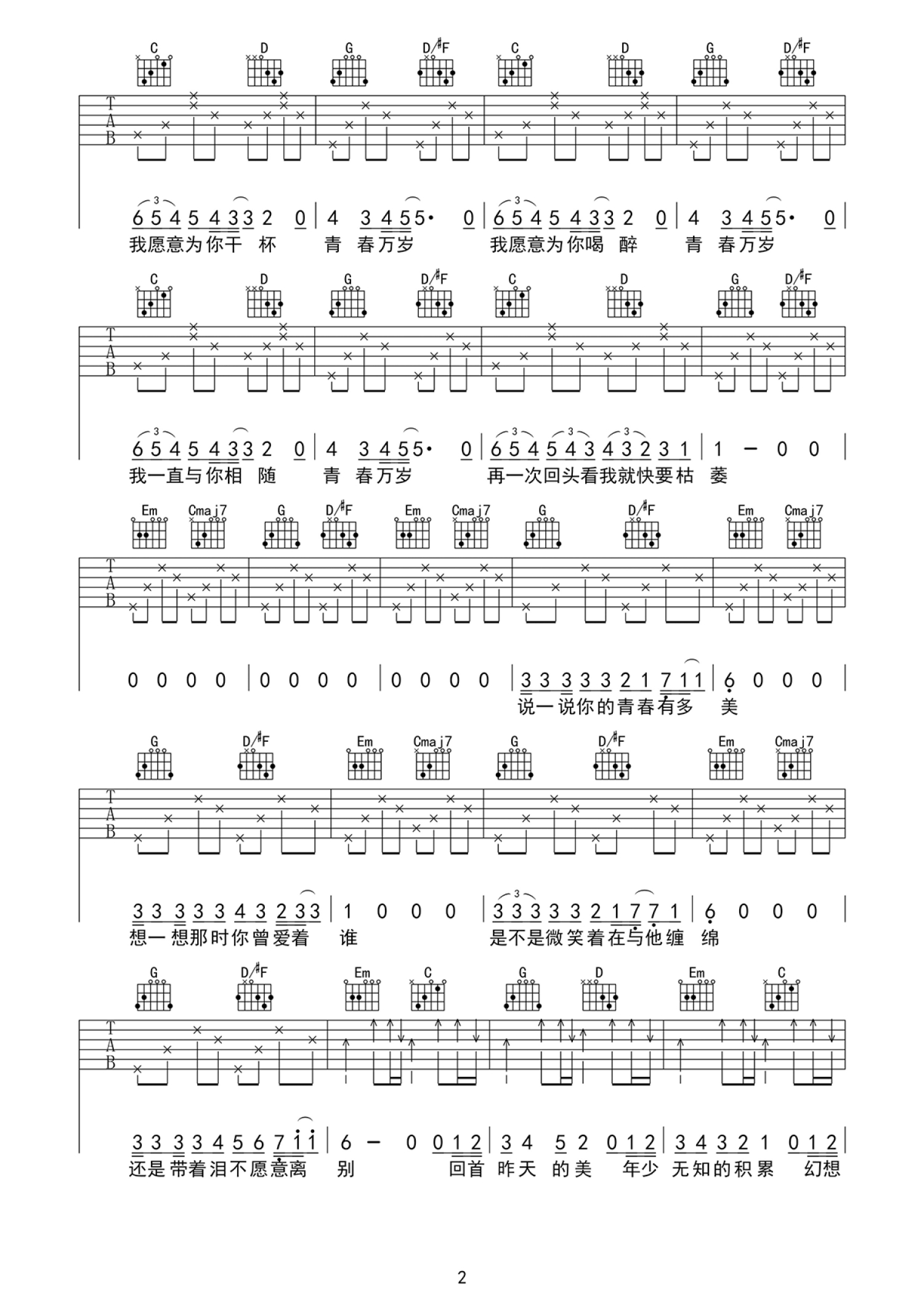 当前位置:琴谱网>吉他弹唱>青春万岁